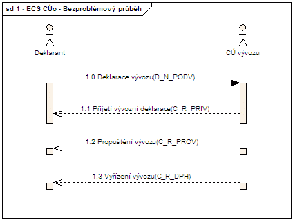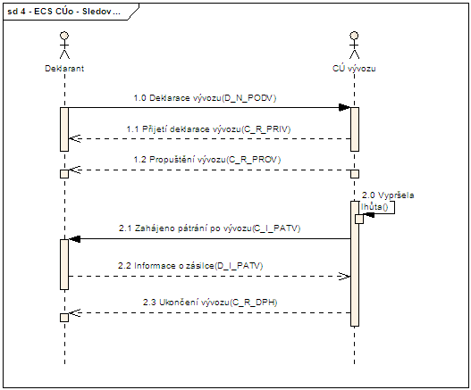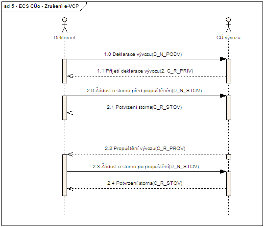 Deklarant obdrží zprávu o přijetí e-VCP (C_R_PRIV) a čeká po stanovenou dobu na příchod zprávy s rozhodnutím CÚ vývozu (doba, po kterou bude deklarant čekat, je individuální a bude stanovena CÚ při vydání ZJP MŘV)