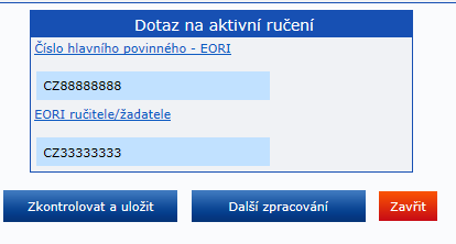 | P04 | EORI Ručitele musí být shodný s EORI z povolení emitovat záruční doklady |