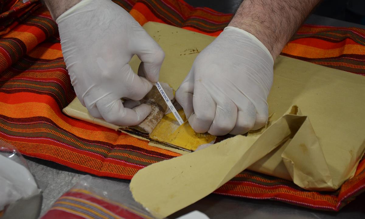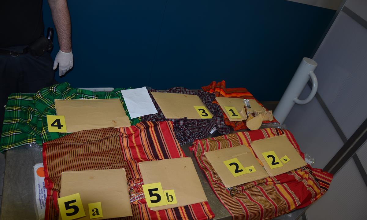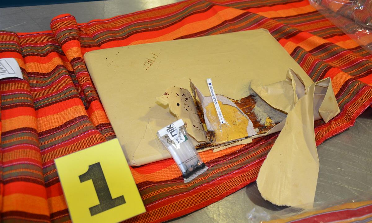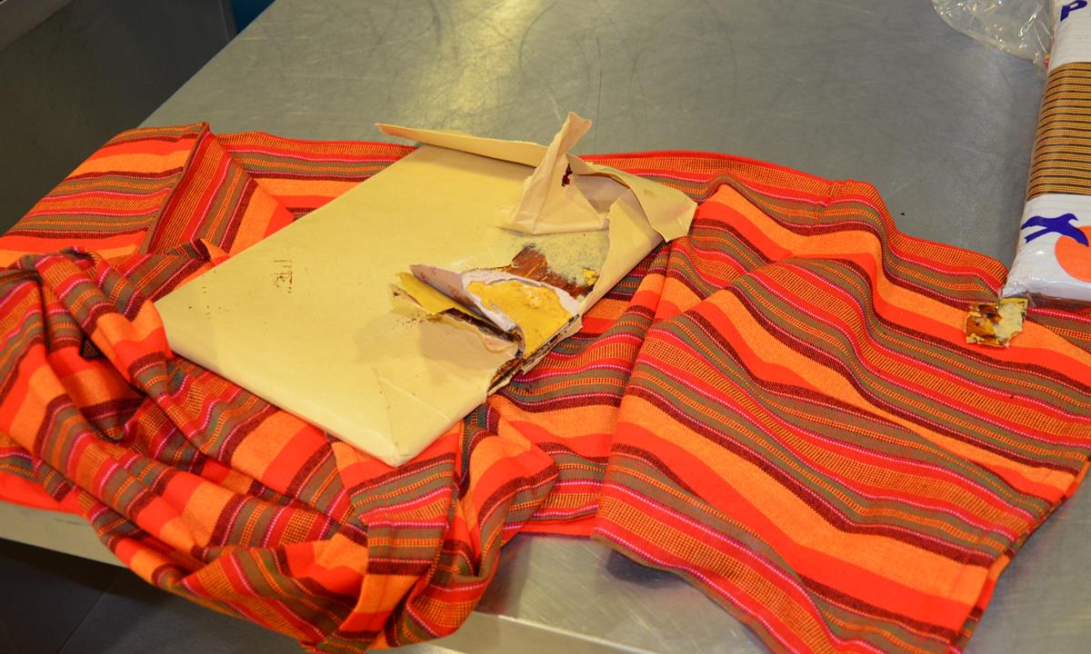 Droga byla umístěna ve vícevrstvých papírových obálkách, kdy jednotlivé vrstvy papíru byly důkladně slepeny. Takto vytvořené balíčky byly zabaleny do tradičních afrických textilií a vsunuty do originálních obalů jako od výrobce (viz.foto + video). Celková hmotnost všech obálek včetně heroinu je 4019,5 gramu.
