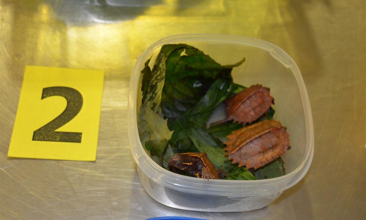 Celníci objevili želvy při běžné kontrole zavazadla za použití rentgenu, kdy se jim nezdál jeho obsah. Při kontrole postupně nalezli 47 živých želv, které byly ukryty v látkové tašce a uloženy ve dvou plastových boxech.