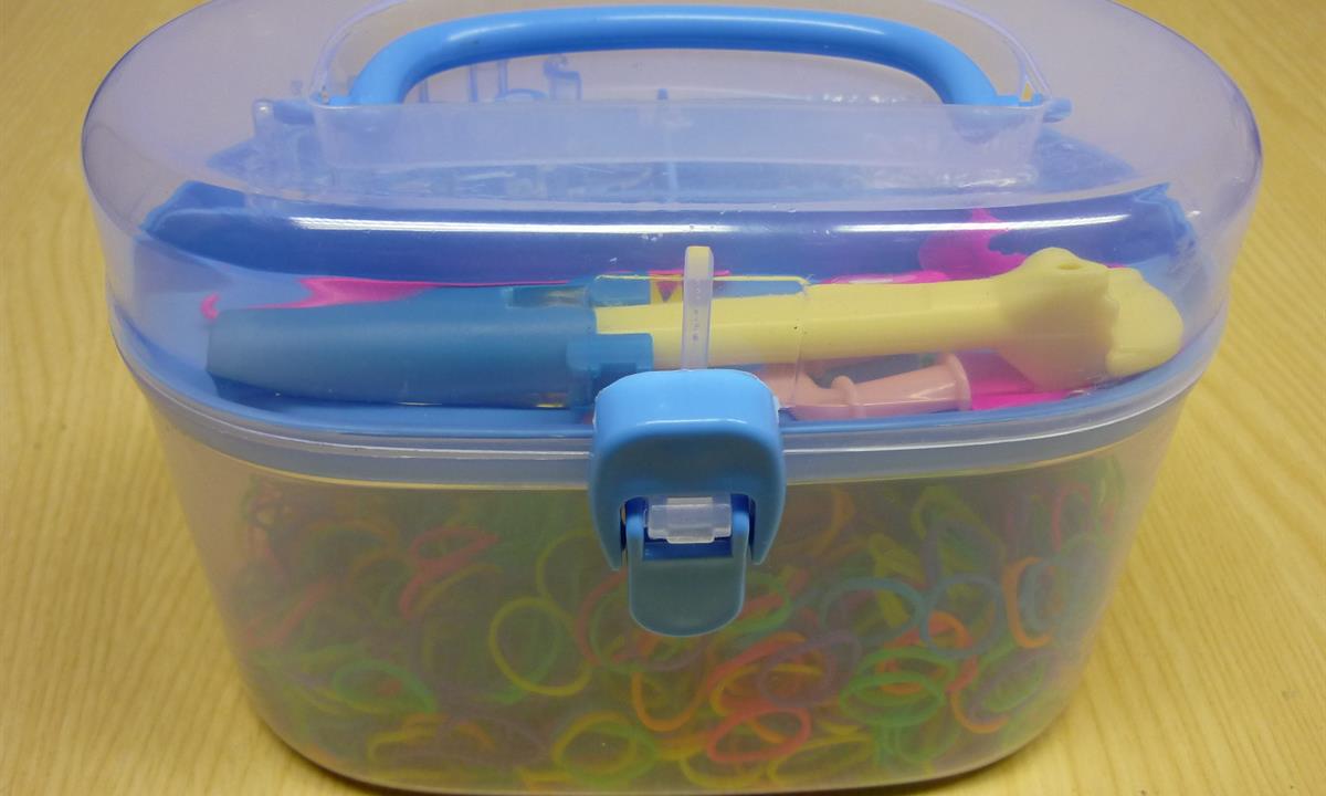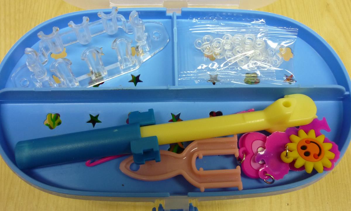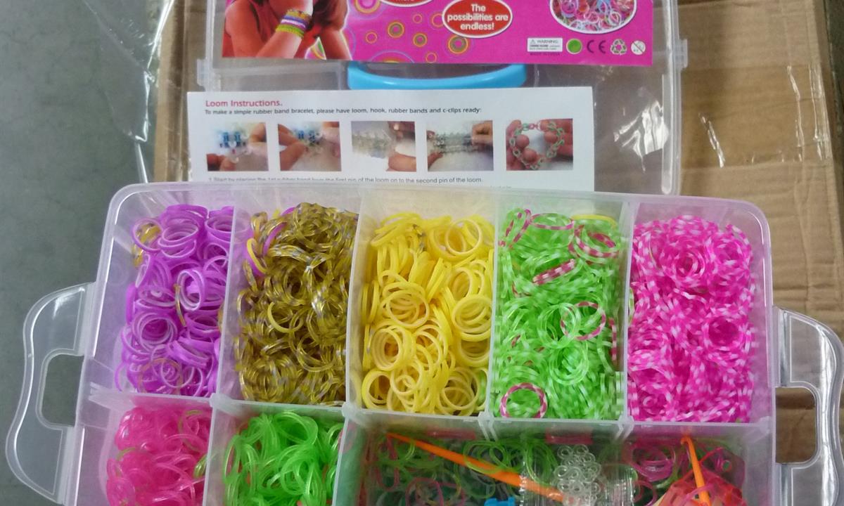 Celkem bylo v 19 zásilkách nalezeno 24 tun sad barevných gumiček s příslušenstvím.