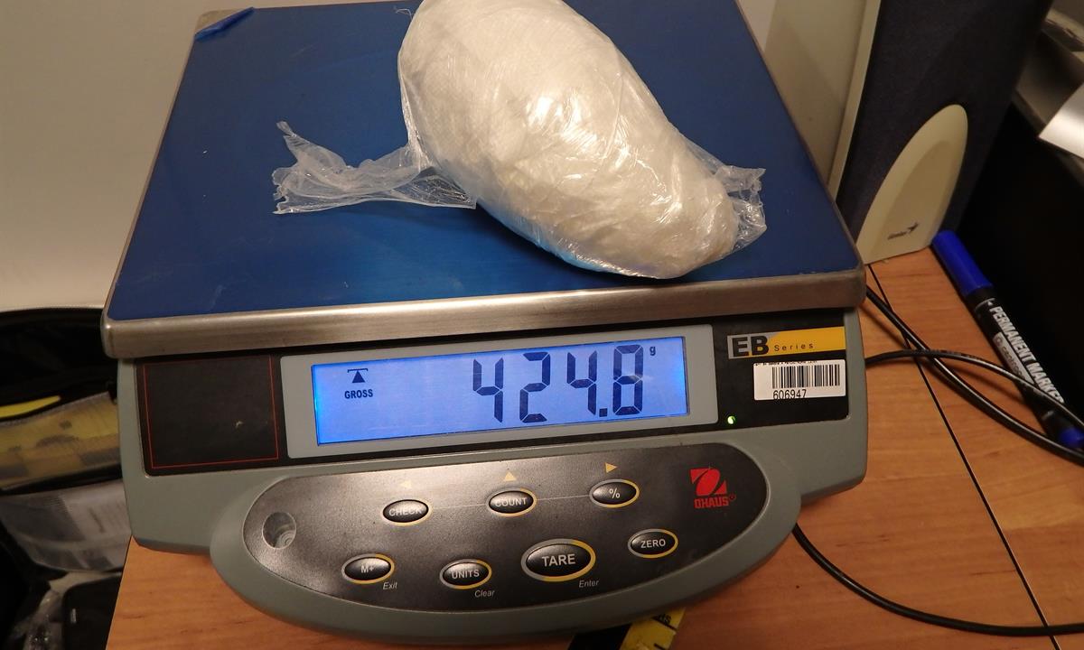 Celková hmotnost drogy byla 424,8 gramů, přičemž odborným zkoumáním byla potvrzena koncentrace ve výši 49,4% kokainu base.