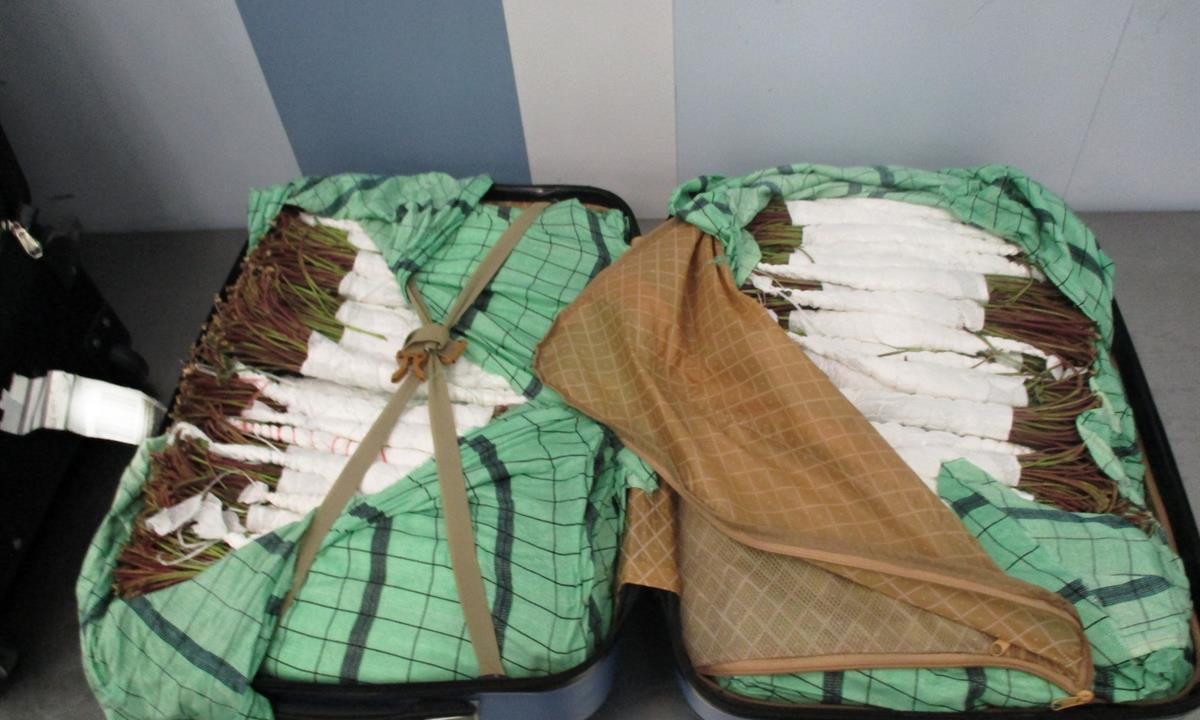 Celníci objevili drogu při běžné kontrole cestujících. Cizincova zavazadla nejprve podrobili rentgenové kontrole s pozitivním výsledkem. Následnou vnitřní kontrolou dvou podaných zavazadel bylo zjištěno, že se v nich nachází vlhké kusy látky obsahující velké množství svazků čerstvého rostlinného materiálu Katy jedlé obaleného v banánových kornoutech o celkové hmotnosti 45,5 kg.