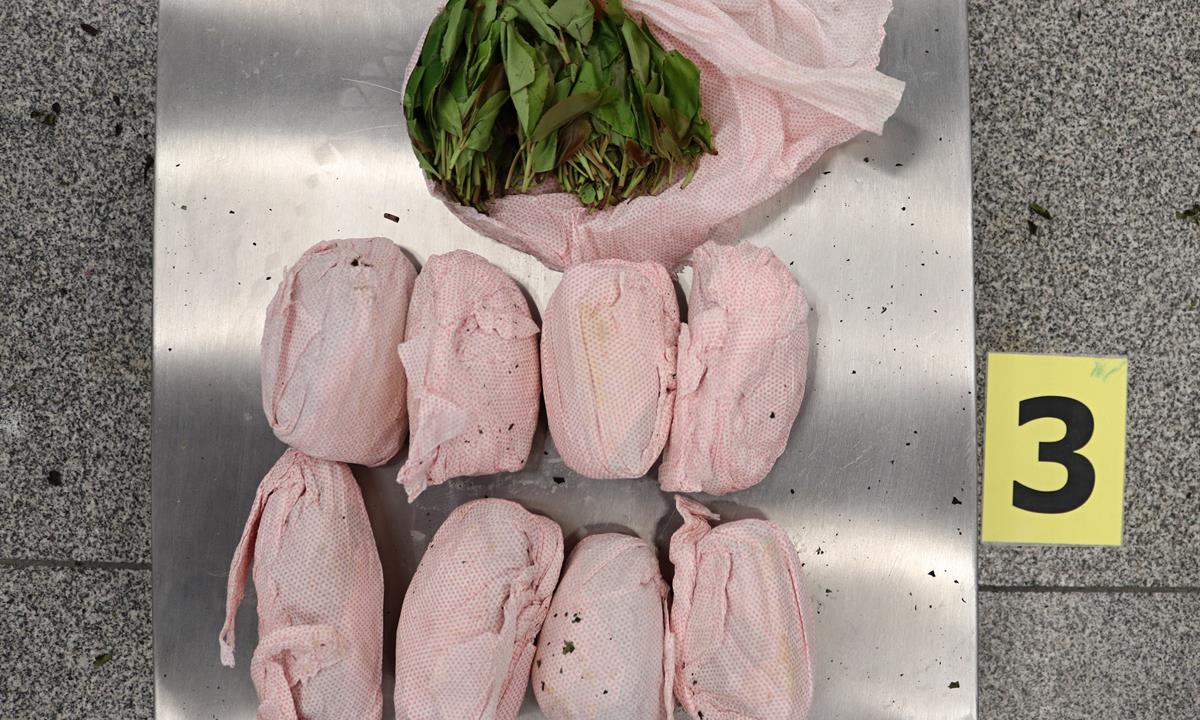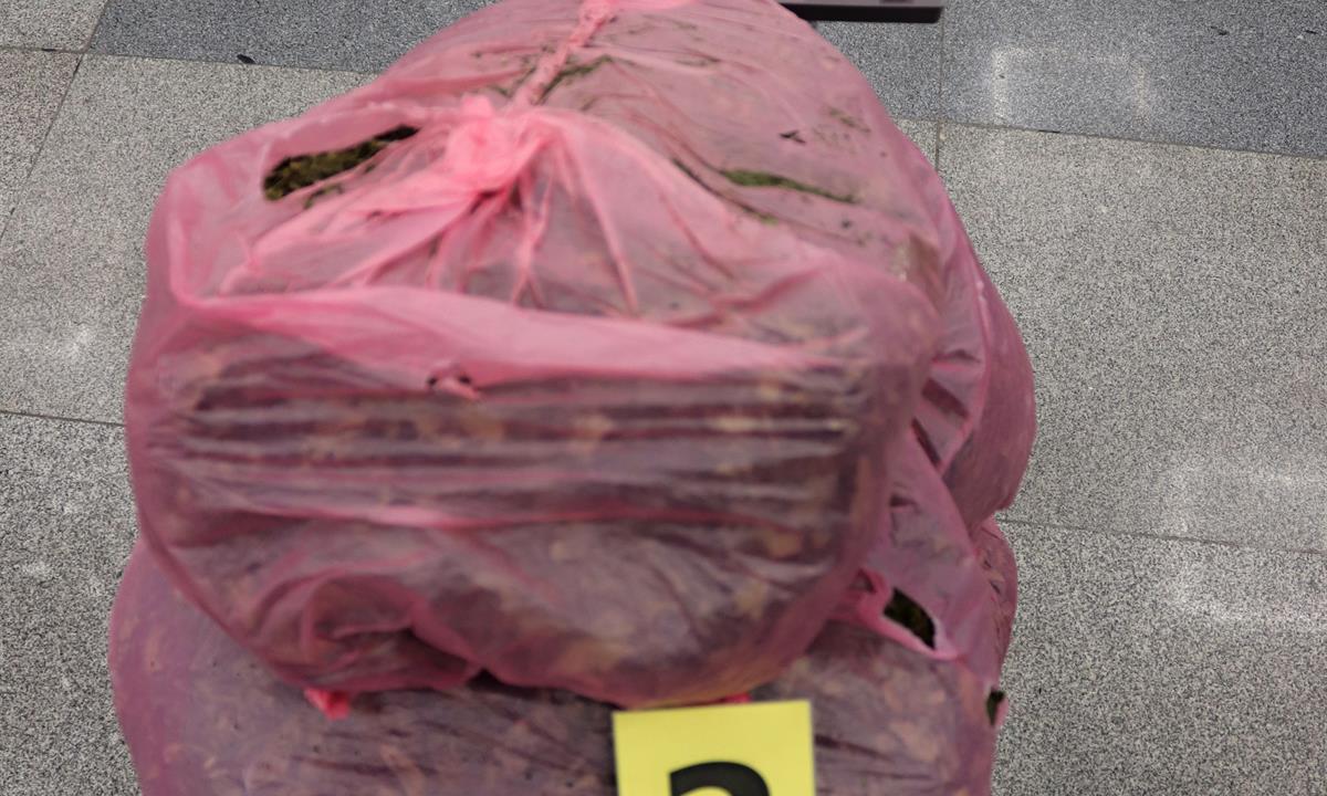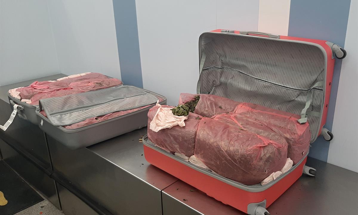 Droga byla objevena při běžné kontrole zavazadel cestujících. Celníci pašerákova zavazadla nejprve podrobili kontrole rentgenem, který je upozornil na organický materiál uvnitř dvou skořepinových kufrů.  Následnou vnitřní kontrolou zavazadel celníci objevili papírové ubrousky, které obsahovaly svazky čerstvých rostlinných výhonků a mikrotenový pytel ve kterém se nacházel sušený rostlinný materiál. Celková hmotnost rostlinného materiálu byla 45 kg.