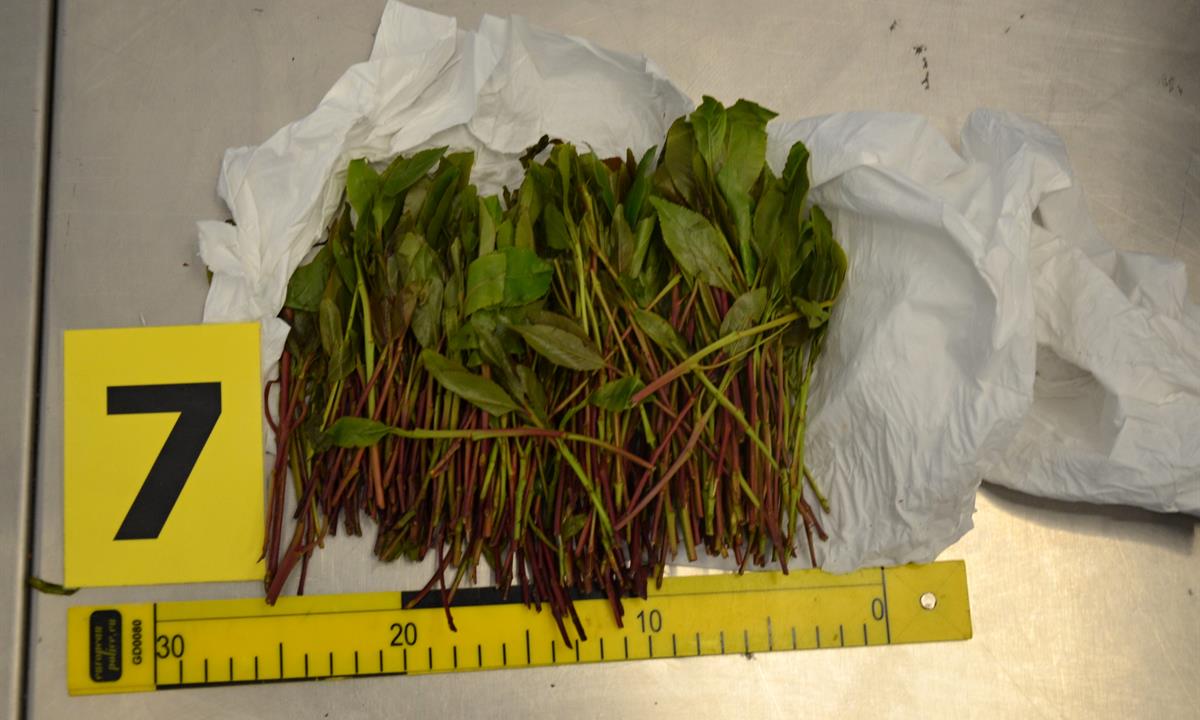 Celníci objevili pašované zboží při běžné kontrole zavazadel cestujících. Kdy zavazadla obou pašeráků nejprve podrobila kontrole rentgenem, který je upozornil na organický materiál uvnitř sedmi látkových kufrů. Následnou vnitřní kontrolou celníci objevili papírové ubrousky, které obsahovaly svazky čerstvých rostlinných výhonků Katy jedlé.