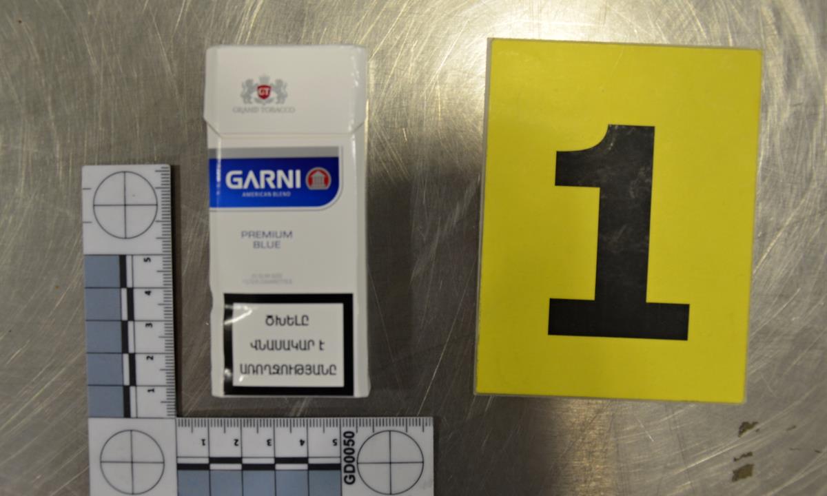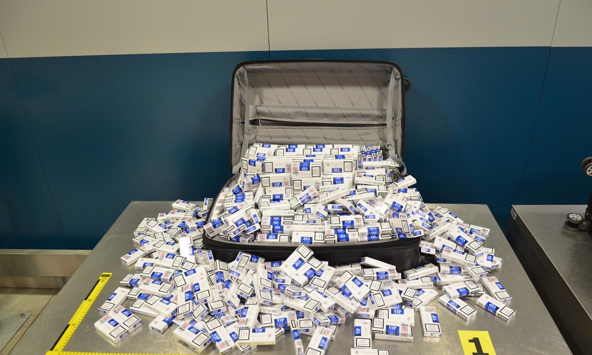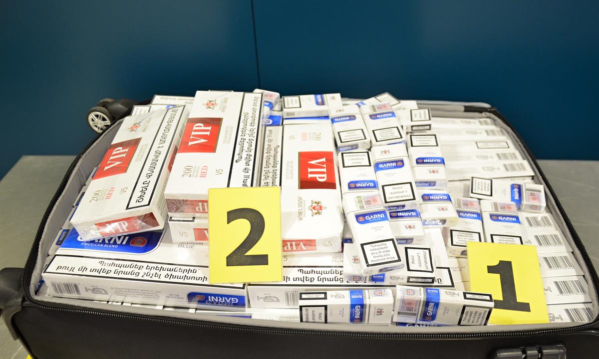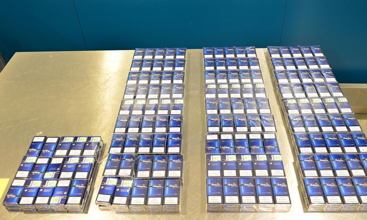 Celníky na podivný obsah čtyř zavazadel upozornil speciálně vycvičeny služební pes na tabákové výrobky. Následnou fyzickou kontrolou všech zavazadel bylo nalezeno 520 ks krabiček zn. Winston Classic; 899 ks krabiček zn. GARNI American Blend Premium B; 400 ks krabiček zn. VIP Red; 50 ks krabiček zn. VIP Gold; 300 ks krabiček zn. Rothmans Blue a 965 krabiček zn. VIP Blue.