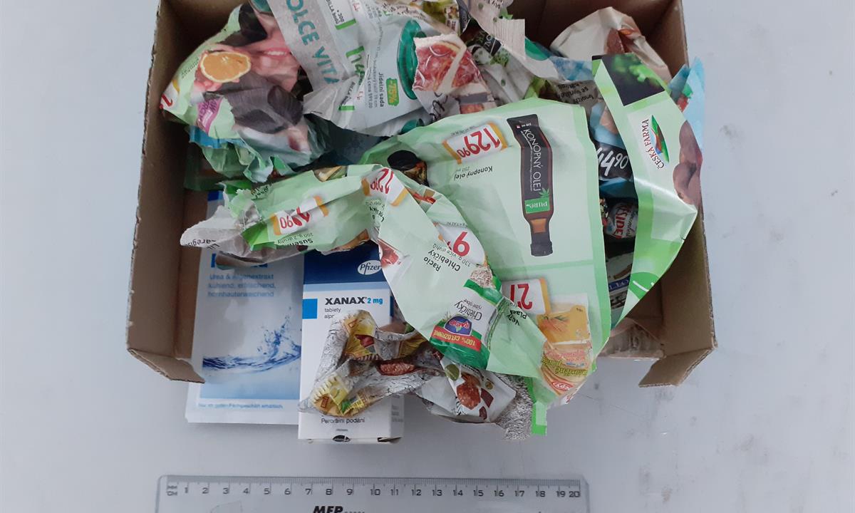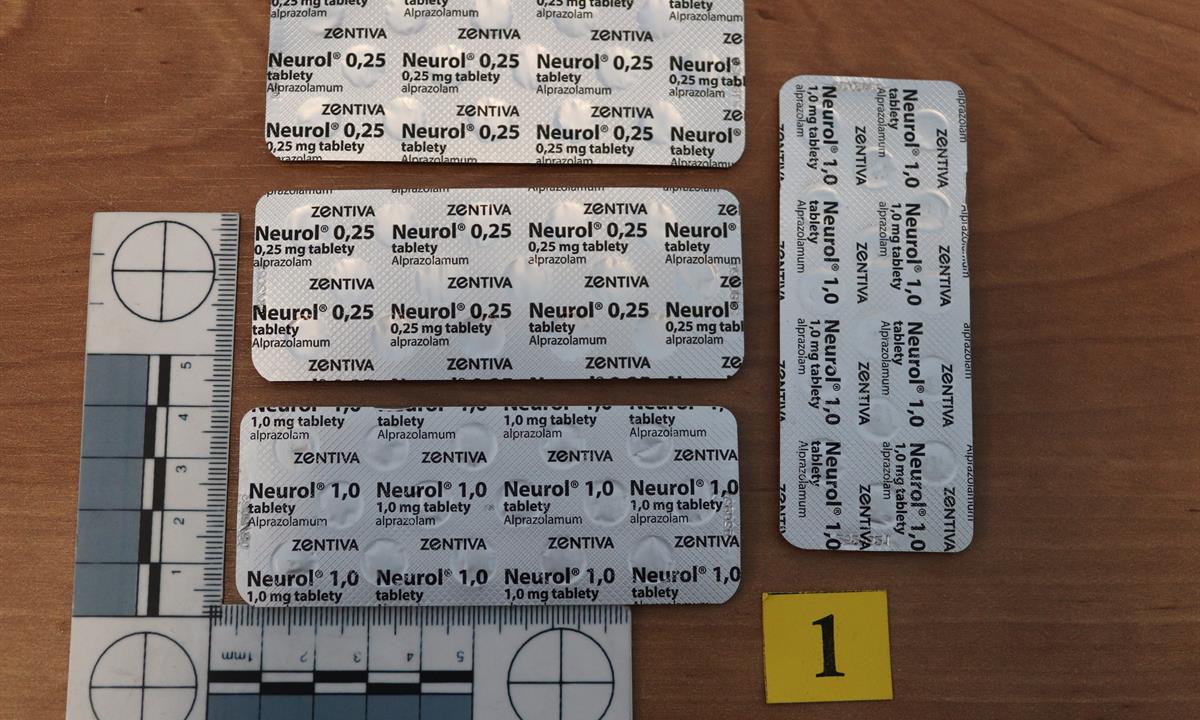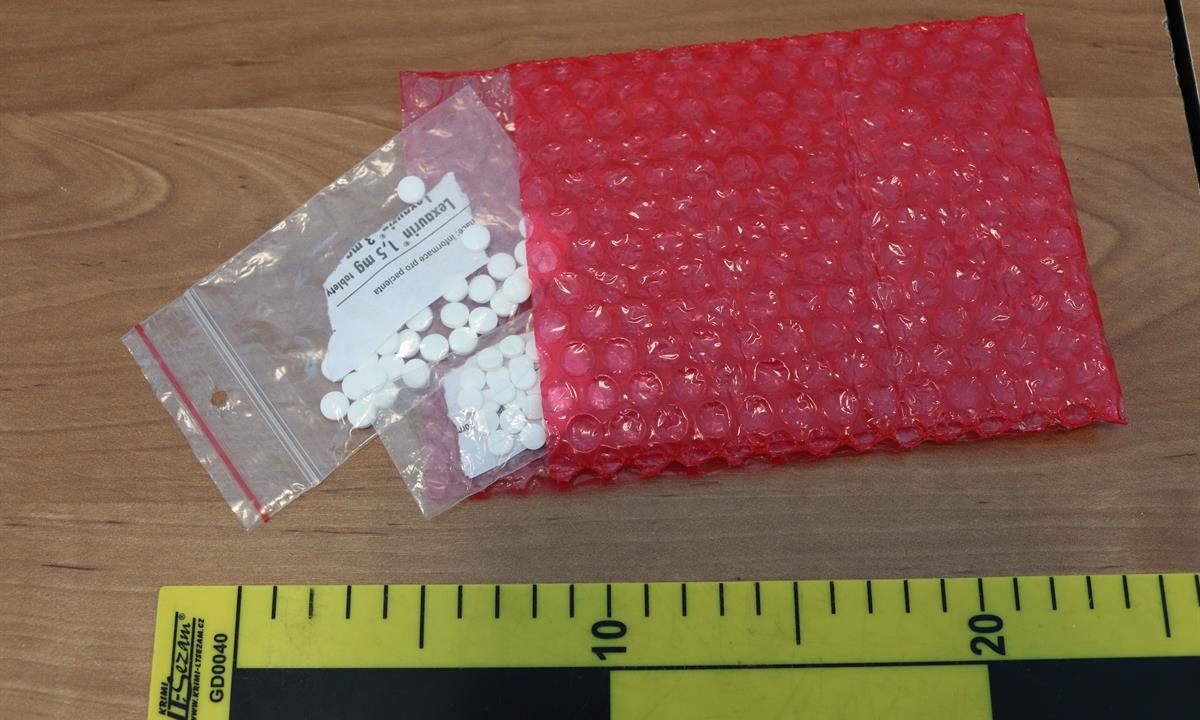 Celkem bylo zadrženo 2 367 tablet. Nejčastěji se jednalo o balení Neurolu, Lexaurinu, Xanaxu, Stilnoxu, Zolpidemu, Diazepamu a Klonazepamu.