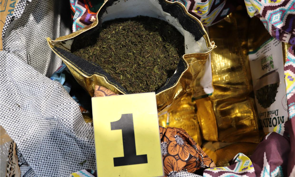 V oblasti nelegální přepravy omamných a psychotropních látek bylo realizováno celkem 507 záchytů přírodních a syntetických drog. Jedná se o pokles oproti roku 2020, kdy bylo odhaleno 551 případů. Drogy byly nejčastěji pašovány poštou v běžných obálkách zpravidla maskovány jako jiné zboží a směřovaly v 342 případech mimo Českou republiku. Celkem bylo zachyceno 159 kg katy jedlé; 47 kg konopí; 8,3 kg koky; 4,5 kg extáze nebo 11,2 kg kokainu. V září byl odhalen cizinec, který se snažil propašovat ve svém zažívacím traktu 124 kapslí obsahujících kokain nebo českou občanku, která pašovala 3,7 kg kokainu ve svých zavazadlech.