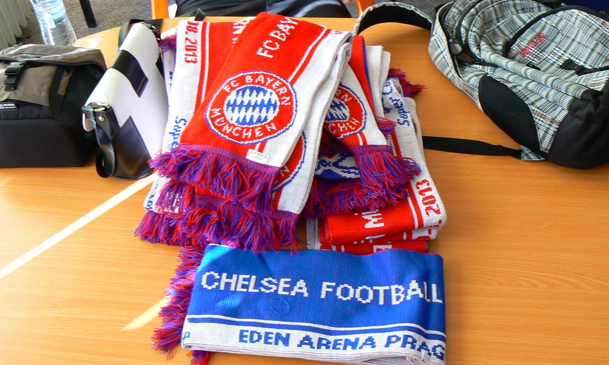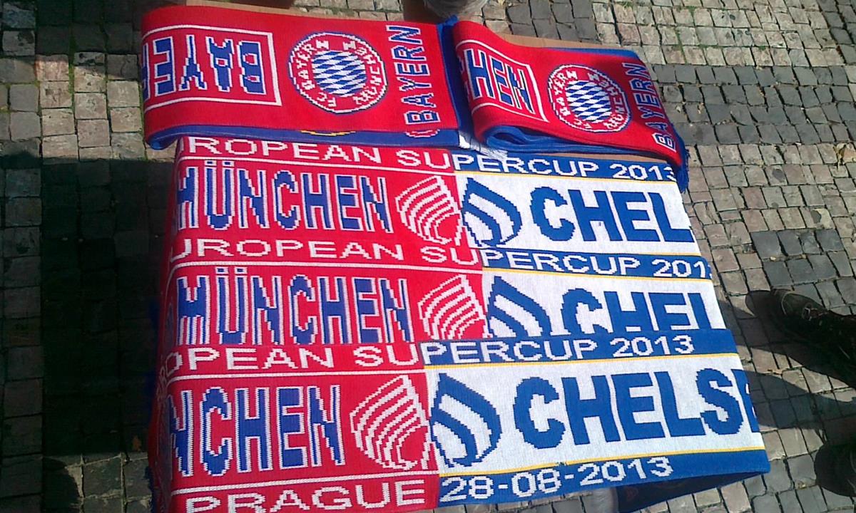 V den zápasu objevili pražští celníci na turisticky frekventovaných místech v Praze několik stovek padělků šál, vlajek, odznaků a matrjošek s logy soupeřících fotbalových klubů Bayernu Mnichov a Chelsea.