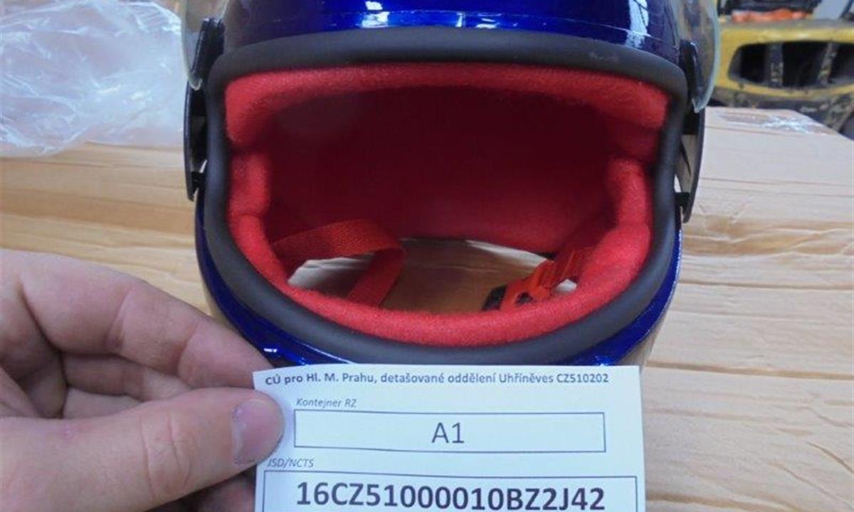 Pražští celníci ve spolupráci s pracovníky České obchodní inspekce na kontejnerovém překladišti v Praze 10 - Uhříněvsi zadrželi zásilku 300 ks plastových motocyklových helem pro děti, které nesplňovaly zákonné podmínky a tudíž nemohou být propuštěny na tuzemský trh. Zásilka pocházela z Číny.