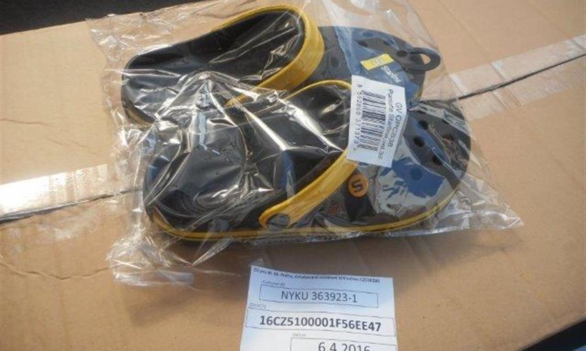 Při kontrole dvou velkoobjemových kontejnerů, jež dorazily do Prahy přes německý přístav Hamburg z Číny, celníci uvnitř objevili téměř 11 tisíc párů obuvi opatřené podobnými, či zaměnitelnými markanty s obuví značky Crocs. Příjemcem měla být česká firma. Přes nápadnou podobnost zboží s proslulou módní obuví Crocs , nebyl příjemce schopen předložit žádné povolení nebo licenci k dovozu a ani k prodeji.