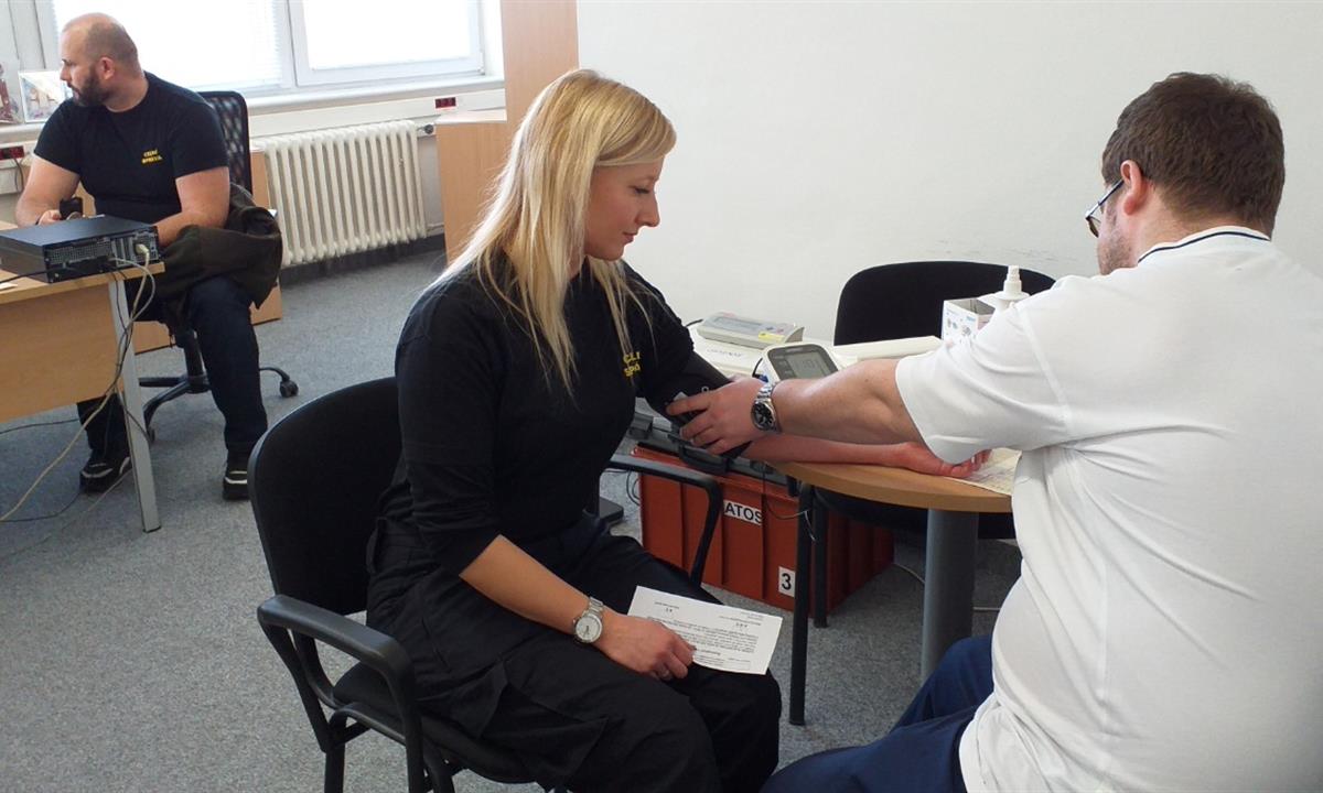 Sanitka, která je pro tyto účely zařízena a je v republice jediná, dorazila minulý týden ve čtvrtek 9. ledna v brzkých ranních hodinách na náš celní úřad do Hostivaře. Přihlášení dárci přicházeli po skupinkách, aby nedocházelo ke zbytečným zmatkům a následovalo tzv. „povinné kolečko", kdy zdravotní sestra změřila příslušnému dárci tlak, následoval rychlý rozbor krve, nezbytný pohovor s lékařem a pak se šlo na věc. Samotný odběr trval zhruba okolo deseti minut.