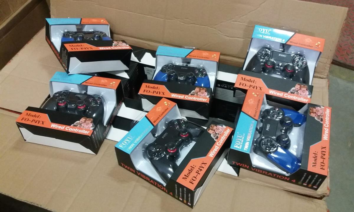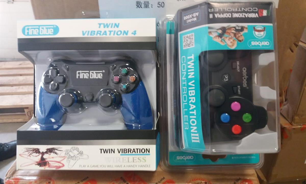 kontejneru byly kartonové krabice plné padělků ovladačů k herním konzolím