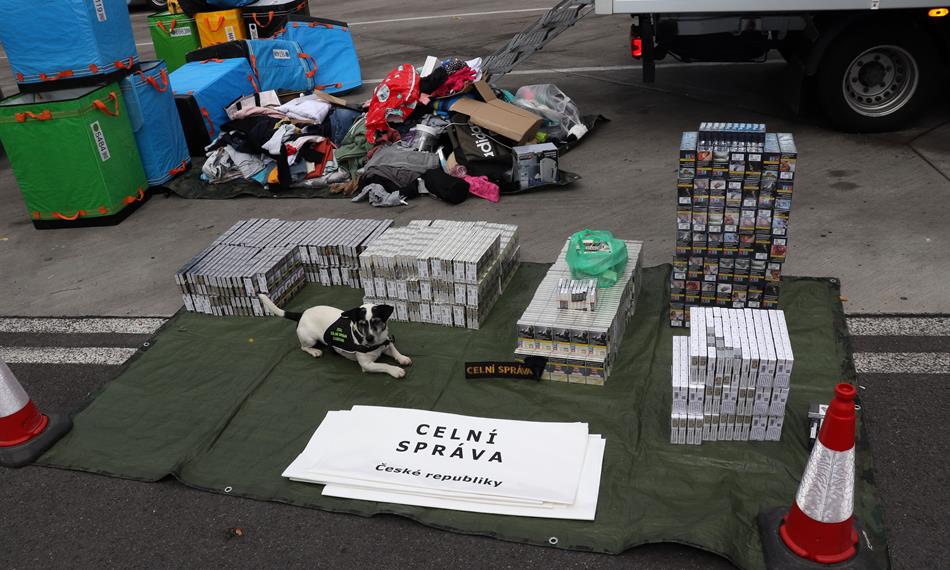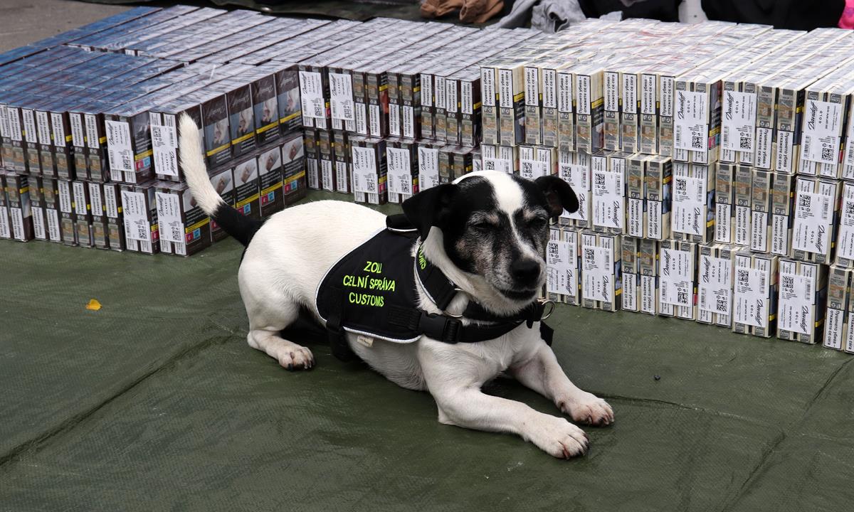 Desítky tisíc kusů pašovaných cigaret na dálnici D1 pražským celníkům neunikly. Kontraband odhalil služební pes Stuart svým neomylným čenichem.