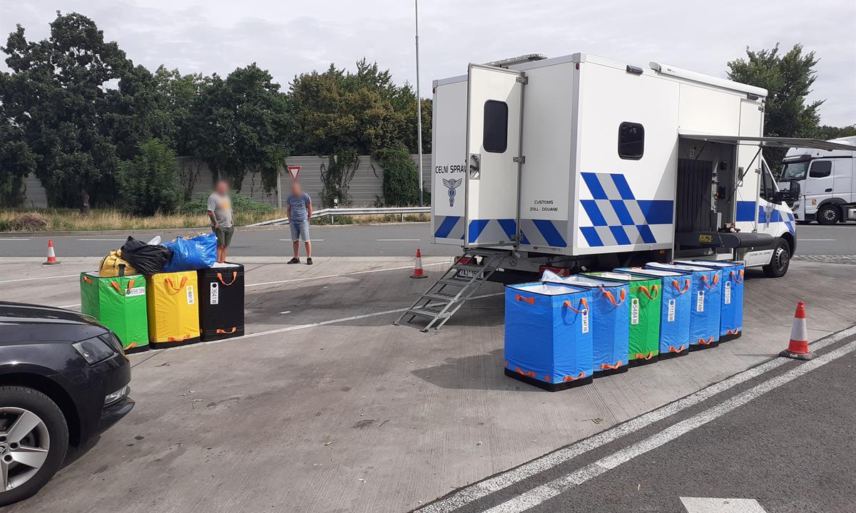 Ve středu 2. srpna prováděli pražští celníci běžnou kontrolu na dálnici D1, v rámci které pátrali po zboží uniklém celnímu dohledu. Hned v prvním vozidle, které si vytipovali ke kontrole, se ukázalo, že je ukrytý kontraband. Dodávkové vozidlo Citroen JUMPER s bulharskými registračními značkami celníci zastavili na čerpací stanici na 4,5 km dálnice ve směru na Prahu. Osádku vozidla tvořily dvě osoby, konkrétně se jednalo o muže bulharské národnosti. Při kontrole vozidla celníci zjistili, že v zavazadlovém prostoru se nacházejí plátěné boxy, které se na první pohled zdály, že obsahují pouze hromadu oblečení. Ke kontrole byl následně přivolán psovod se služebním psem Stuartem, vycvičeným na vyhledávání cigaret a tabákových výrobků. Stuartovi se na boxech „něco nezdálo“ a okamžitě je začal svým čenichem značit. Plátěné boxy byly poté důkladně zkontrolovány mobilním rentgenem, který potvrdil, že v šesti z devíti boxů se na dně nachází velké množství kartonů cigaret. Celníci odhalili a následně zajistili celkem 45 140 kusů cigaret značek Parlament Aqua Blue 100´s, Dunhill a Davidoff. Všechny byly označené bulharskou tabákovou nálepkou a nebyl k nim předložen žádný doklad prokazující zdanění. Spolucestující se celníkům přiznal, že předmětné zboží patří jemu.