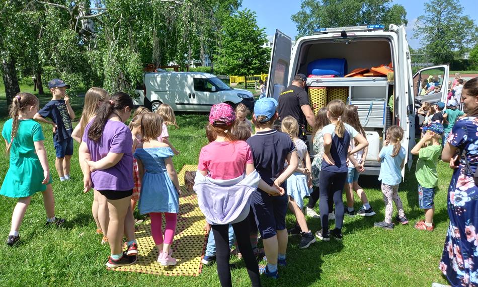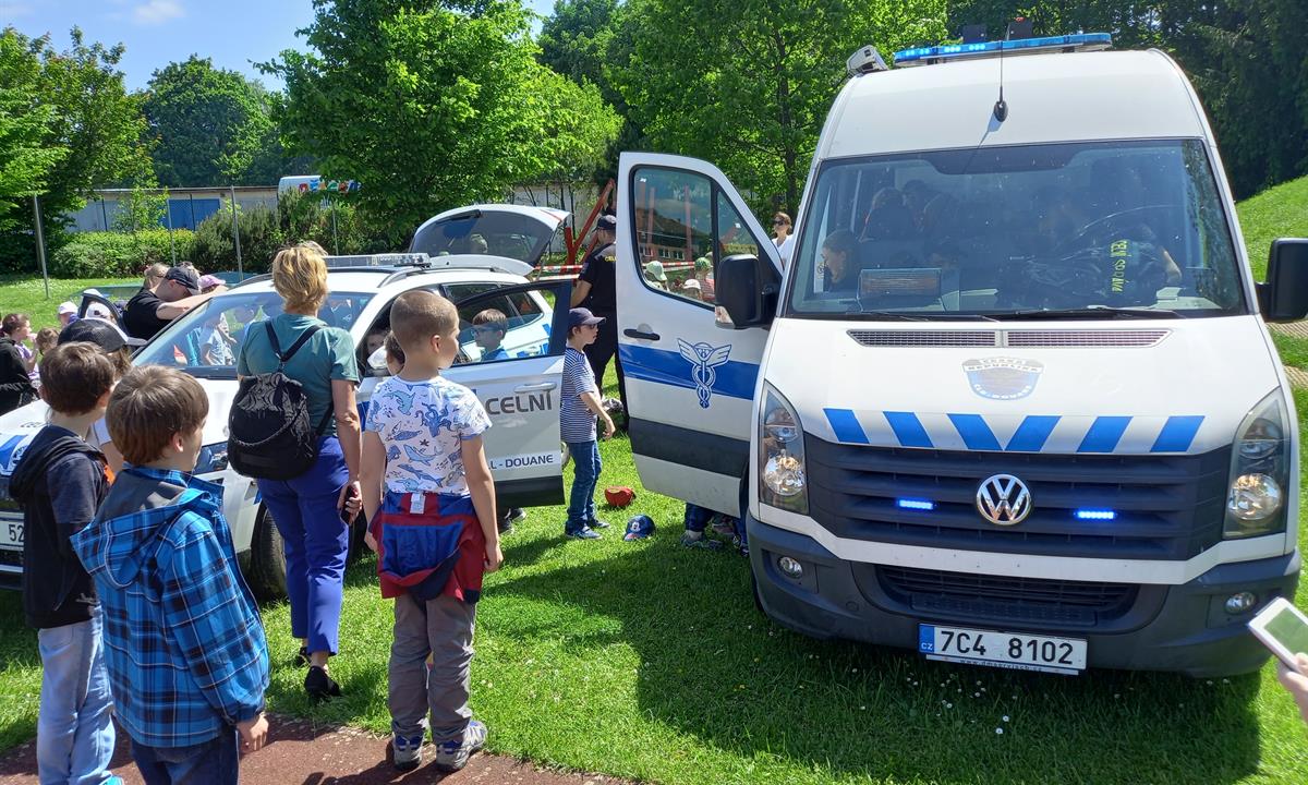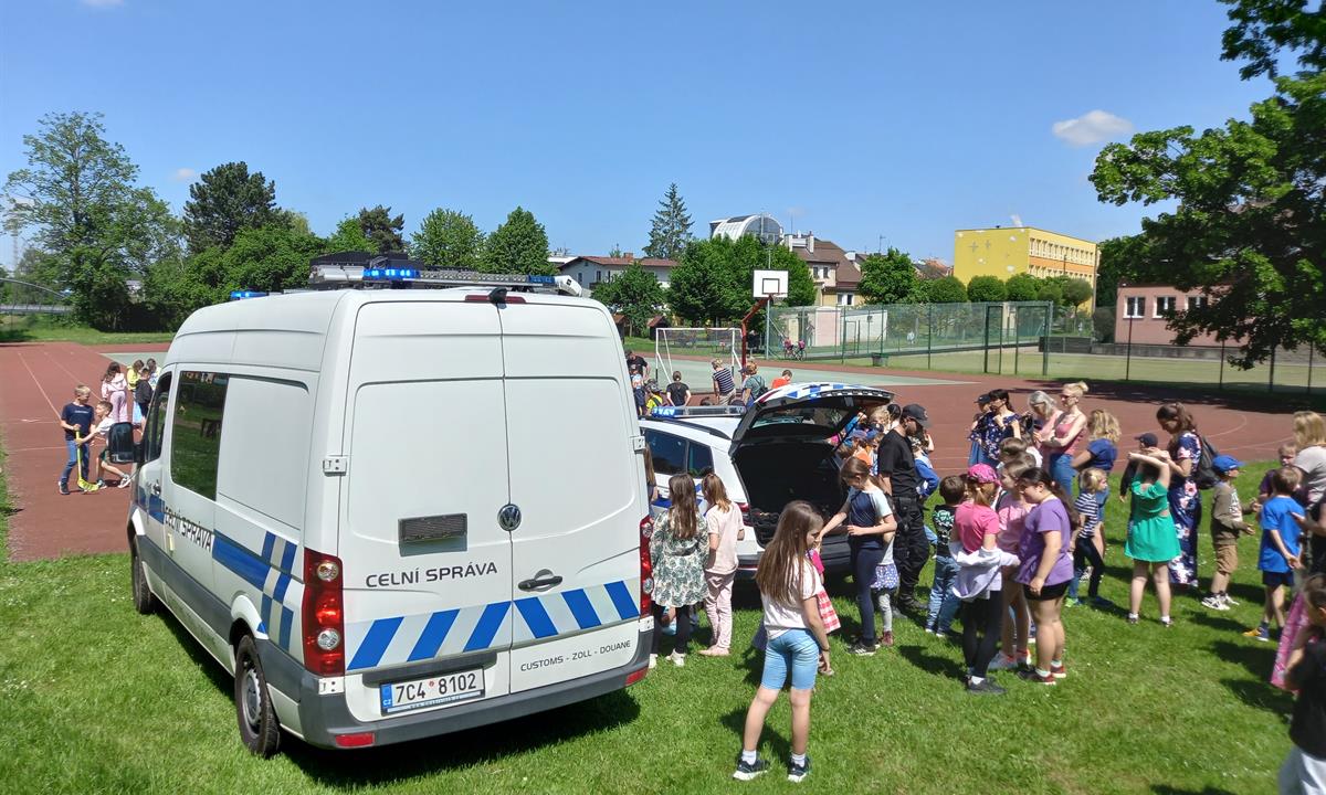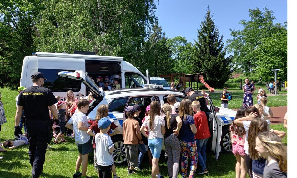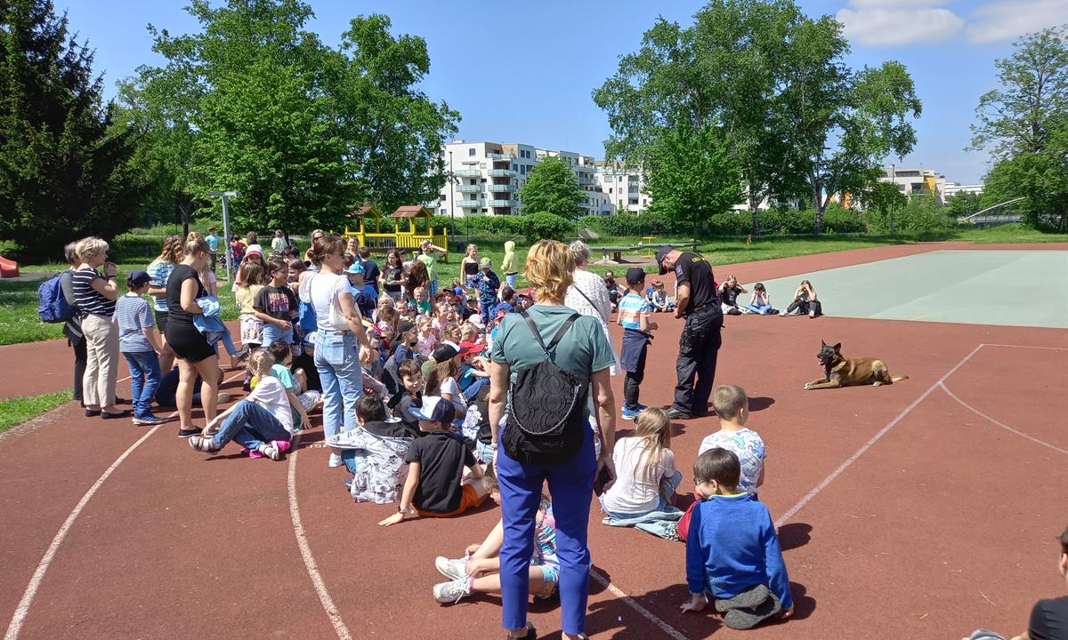 Čtvrteční odpoledne posledního květnového týdne se školáci ze školní družiny ZŠ Dukelská a ZŠ Grünwaldova v Českých Budějovicích sešli na hřišti v areálu základní školy Grünwaldova, kam za nimi zavítali příslušníci oddělení mobilního dohledu a také psovod se služebním psem.