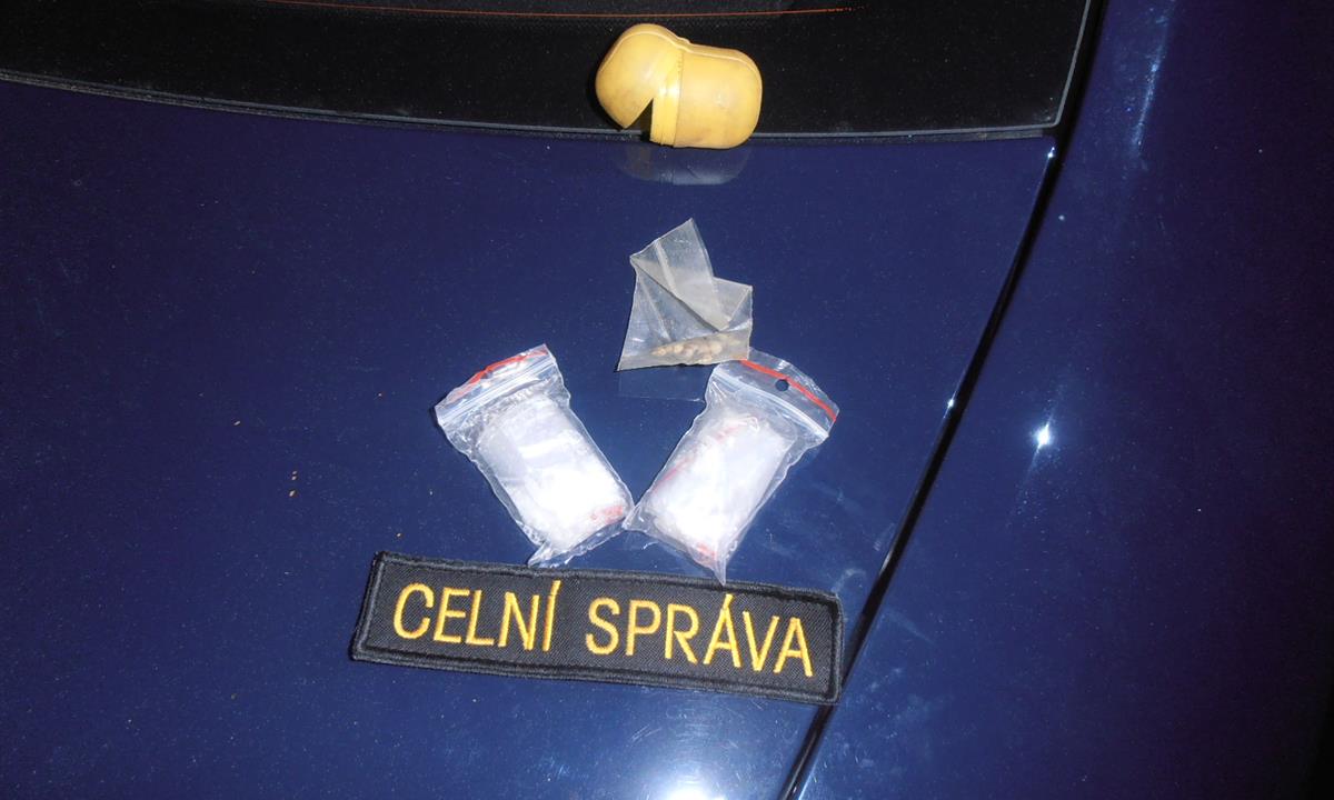 Celníci požadovali doklady. Řidič je předložil, spolujezdec sdělil, že je u sebe nemá. Jeho chování bylo podezřelé.  Poté celníci provedli kontrolu, u které asistoval psovod se speciálně vycvičeným protidrogovým služebním psem Maxem. Při kontrole interiéru vozidla služební pes označil v místě spolujezdce nepořádek na rohožce, kde bylo fyzickou kontrolou zjištěno, že se v krabičce povinného vybavení vozidla (náhradní žárovky do světlometů) nachází tři PVC sáčky s lištou obsahující zelenou rostlinou látku připomínající marihuanu. Dalším místem, které služební pes označil, byla krabička od cigaret, která byla uložena v přihrádce vozidla. V krabičce celníci objevili cigarety a rovněž zelenou rostlinu připomínající marihuanu. Tato podezření se následně potvrdila, jednalo se skutečně o marihuanu v celkovém množství čtyř gramů. Celníci přistoupili také k provedení bezpečnostní prohlídky a vyzvali obě kontrolované osoby, aby předložily veškeré své osobní věci, které u sebe mají. Osoba, která jela ve vozidle jako spolujezdec, vyndala z přední pravé kapsy svých montérek dva igelitové balíčky (smotky PVC sáčků s lištou), které obsahovaly bílou krystalickou látku. Celníci okamžitě pojali podezření, že se jedná o pervitin. Mladík nezapíral a přiznal, že se skutečně jedná o pervitin. Prohlásil, že tuto látku nazývá „kameny“ a sdělil, že se jedná o pervitin v množství dvaceti jednogramových dávek. Oba muži byli předáni přivolaným příslušníkům Policie ČR. Hodnota zajištěného pervitinu by na černém trhu činila okolo dvaceti tisíc korun.