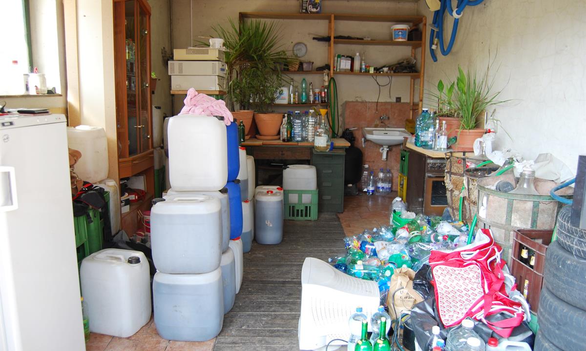 Ve sklepních prostorách a garáži domu celníci našli 800 litrů lihovin uskladněných v barelech, PET lahvích a skleněných lahvích, zařízení pro výrobu lihu, 1 280 kusů neznačených cigaret a nefunkční samopal.