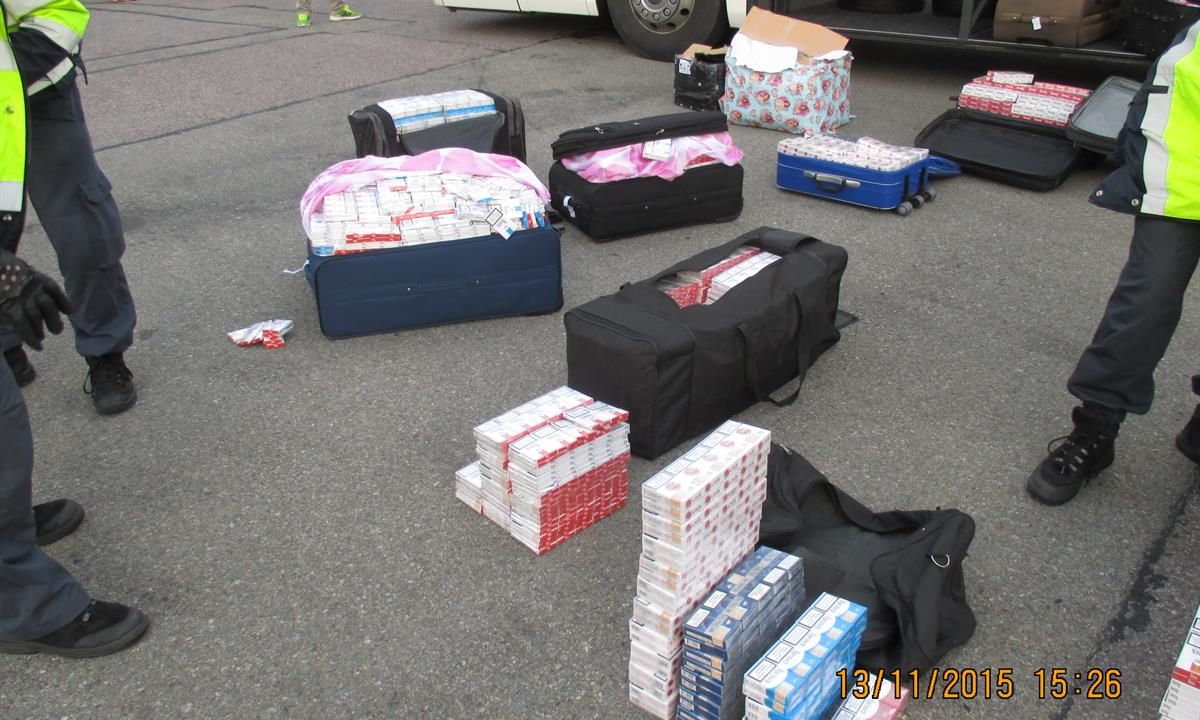 Hlídka se rozhodla autobus zkontrolovat. V několika zavazadlech celníci našli velké množství neznačených cigaret různých značek, ke kterým se přihlásila Polka a Rus. Dále celníci našli balík s parfémy a balík s potravinami, mezi kterými byly igelitové sáčky s tabákem. Dle výpovědi řidiče balíky nepatřily nikomu z cestujících, jednalo se o zásilky.