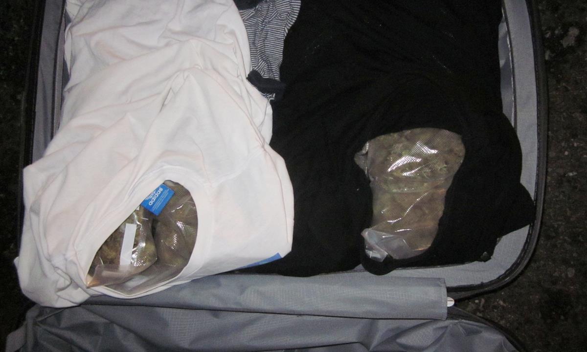 V cestovním kufru celníci našli devět igelitových sáčků se sušenou rostlinnou látkou o celkové hmotnosti 4 807 gramů. Orientační narkotest reagoval pozitivně na přítomnost marihuany. Sáček s kokainem o celkové hmotnosti půl gramu byl ukrytý v tašce na toaletní potřeby. Celníci řidiče – Makedonce s bulharským pasem a kontraband zajistili. K případu byla přivolána Celní protidrogová jednotka.