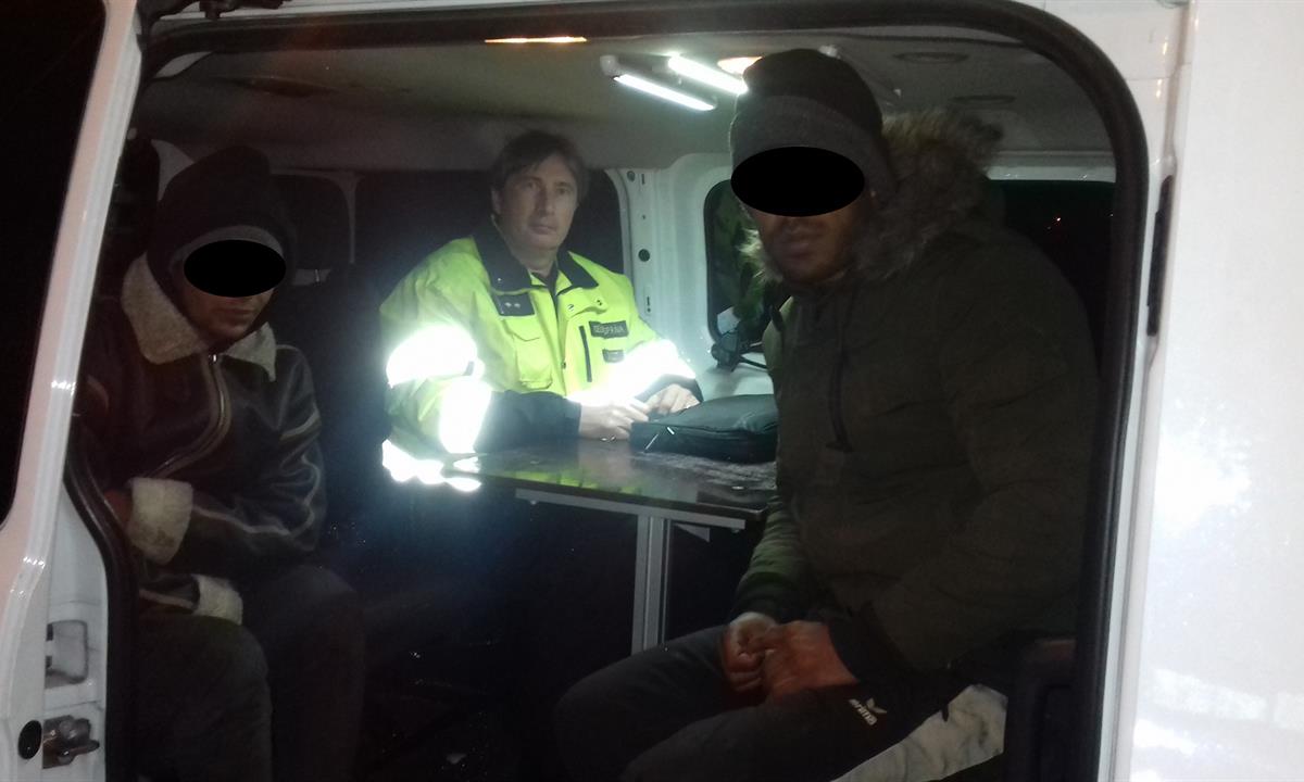 Postupně se podařilo zjistit, že se jedná o Alžířana a Syřana. Alžířan neměl u sebe žádné doklady a Syřan měl evidenční kartu imigračního tábora v Srbsku. Celníci přes Operační centrum CS ČR zkontaktovali Policii ČR. Hlídka z Odboru cizinecké policie se na místo dostavila přibližně za půl hodiny a muže převzala k dalšímu šetření.