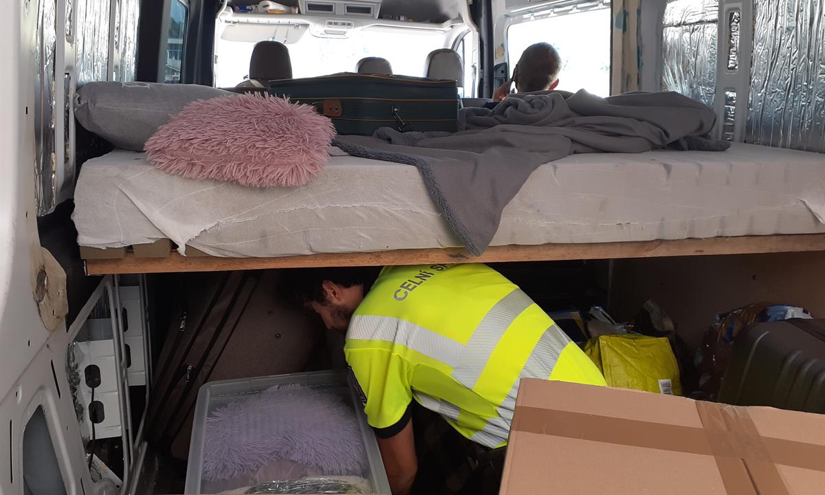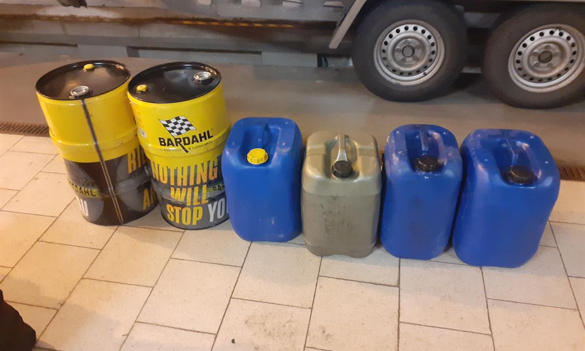 Bez potřebných dokladů se pokusil převézt svůj náklad také rumunský řidič jedoucí poslední srpnový večer z Belgie. Kromě obchodního zboží měl naložené také dva plechové sudy a čtyři plastové kanystry naplněné naftou o celkovém objemu 235 litrů a chtěl ji použít doma pro pohon traktoru. Nejenže neměl doklady, ale jednalo se o naftu barvenou, která je určena výhradně pro výrobu tepla.