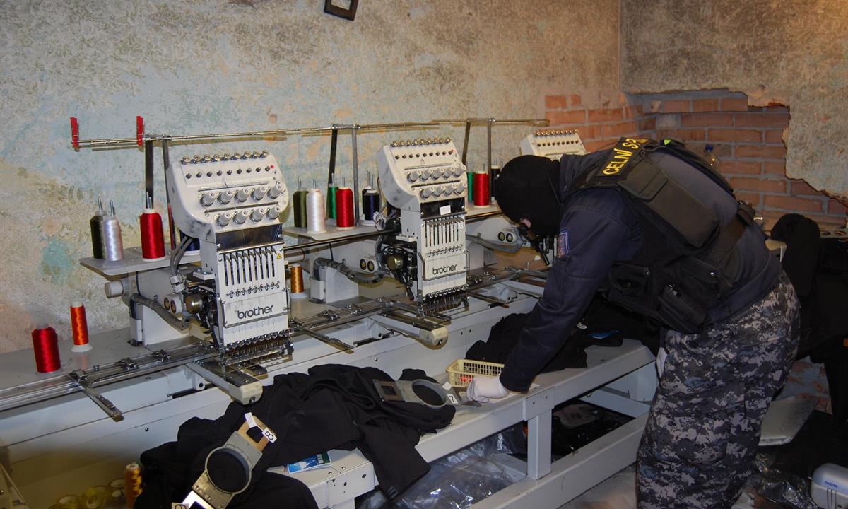 Při akci PATRON zaměřené na nelegální výrobu padělků a obchodování s nezdaněnými cigaretami provedli celníci několik domovních prohlídek a prohlídek jiných prostor v obci Cheb. Ve sklepních prostorách jedné z budov objevili výrobnu padělků textilu, která byla vybavena dvěma vysokorychlostními a dvanácti multifunkčními vyšívacími stroji a zabavili téměř 1.500 kusů padělků textilu. Cena originálů by přesáhla dva a půl miliónu korun.