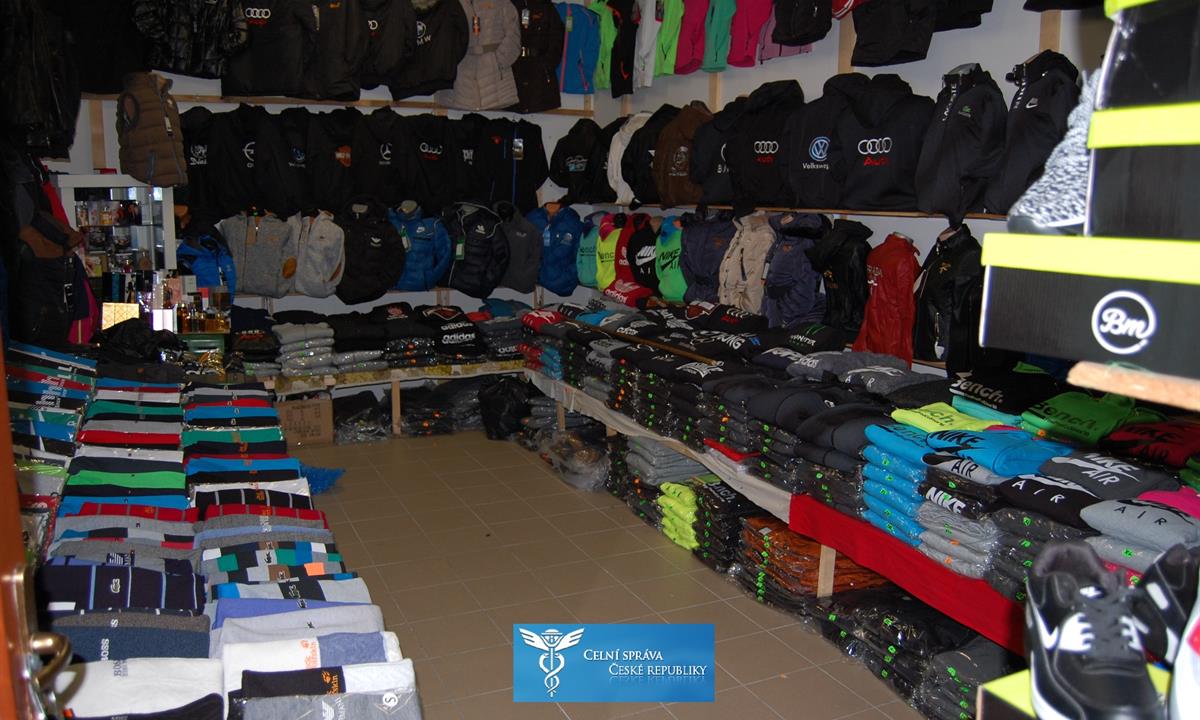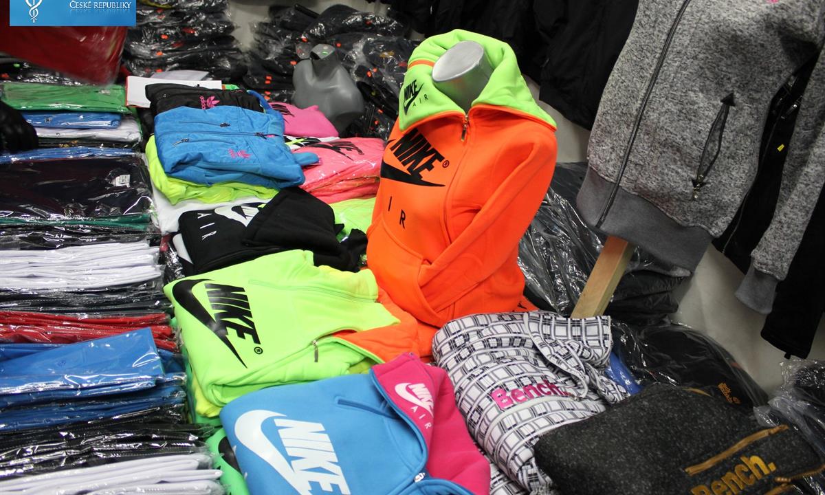 V pátek 11. března karlovarští celníci provedli pět prohlídek jiných prostor a pozemků v obchodním centru Dragoun v Chebu. Při prohlídkách odhalili dva utajené nabídkové a skladovací prostory, v nichž našli a zajistili přes dva tisíce kusů textilního a galanterního zboží a 161 párů obuvi, neoprávněně označených ochrannými známkami známých výrobců, např. Louis Vuitton, Prada, Michael Kors, Armani, Puma, Bench, Gucci, Dolce Gabbana či Tommy Hilfiger. Kromě toho zde našli samostatná loga nesoucí označení ochranných známek Nike a adidas, určená ke zhotovování padělků obuvi.