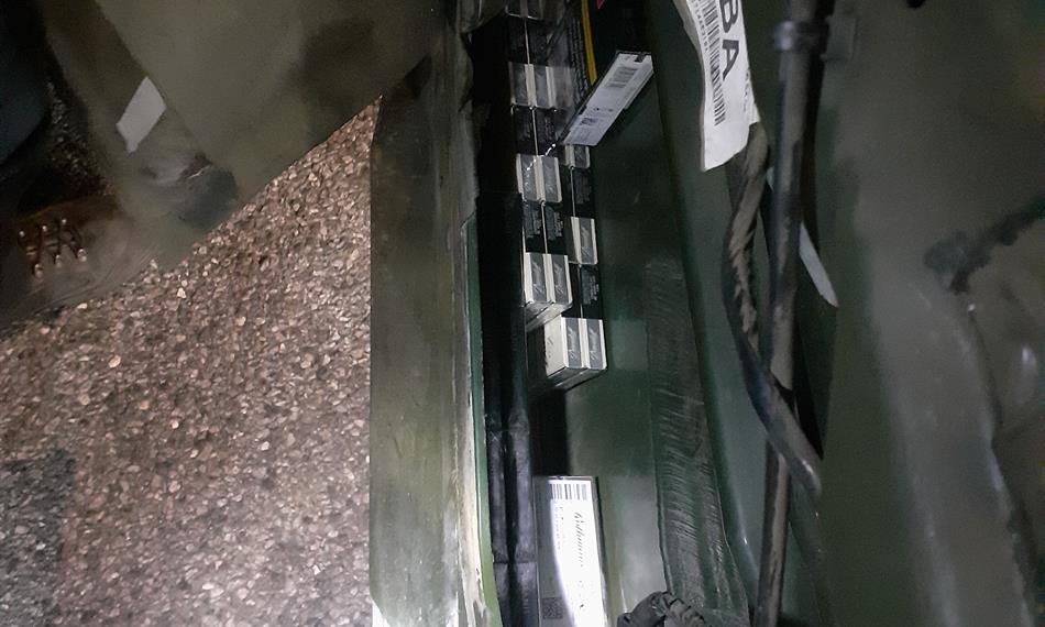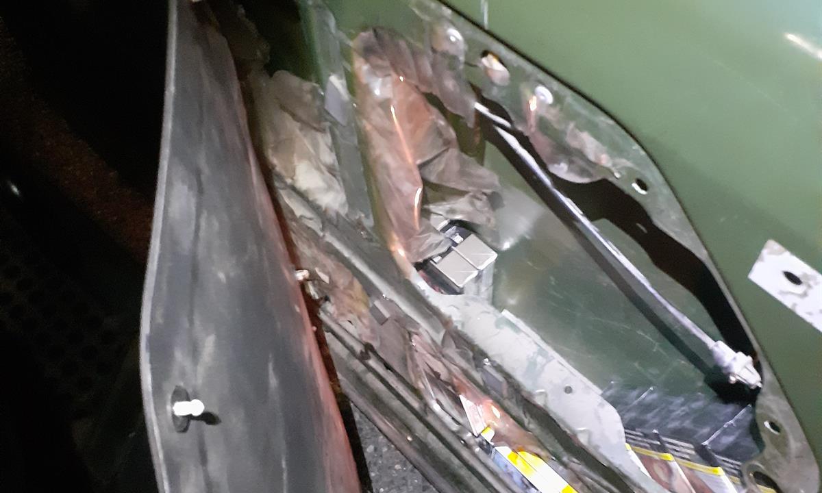 Při ohledání prostoru pro cestující a zavazadlového prostoru žádné cigarety ani lihoviny nalezeny nebyly, pouze větší množství potravin. Důslední celníci ovšem pokračovali v kontrole konstrukčních dutin vozidla a v levých zadních dveřích objevili kartóny cigaret, které byly zakryty polstrováním. Hlídka pojala podezření, že takto ukryté budou i v ostatních konstrukčních dutinách, přistoupila k demontáži a odhalila úkryty cigaret také v dalších dveřích vozidla.