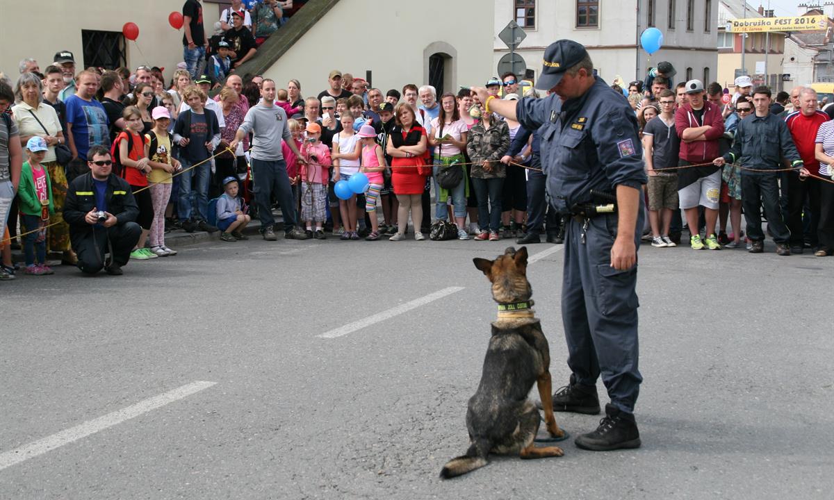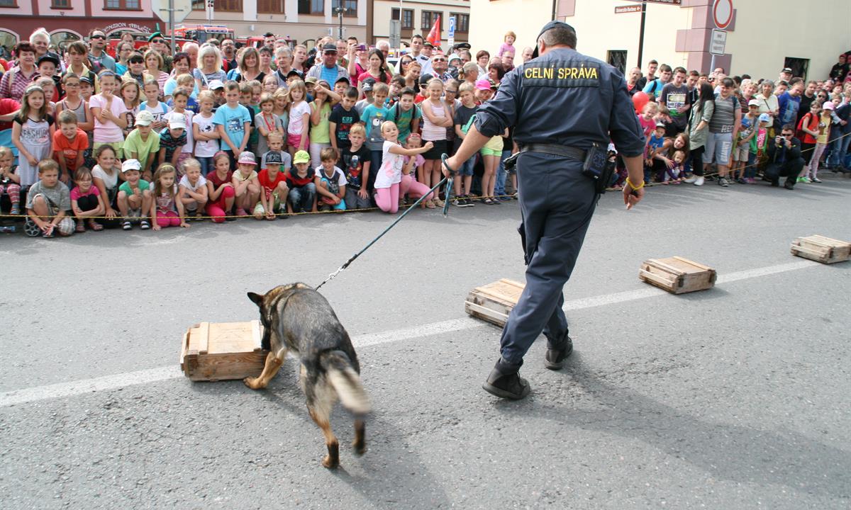 ​Celní úřad pro Královéhradecký kraj se i v letošním roce účastnil již devátého ročníku výchovně propagační akce Den záchranných a bezpečnostních složek Integrovaného záchranného systému v Dobrušce, který byl určen široké veřejnosti a měl za úkol přiblížit hlavně žákům a studentům škol práci složek IZS. K vidění byla historická i současná technika složek IZS, dynamické ukázky profesionálních i dobrovolných hasičů, ukázky z činnosti Policie ČR, Zdravotnické záchranné služby, Horské služby ČR, Armády ČR. Celní úřad měl pro diváky přichystány statické ukázky techniky – vozidlo výkonového zpoplatnění s vybavením pro kontrolu mýta za zpoplatněné úseky komunikací a kontrolu dálničních kupónů. V prezentačním stánku si návštěvníci mohli prohlédnout padělky zajištěného zboží, exponáty podléhající mezinárodní úmluvě CITES, zboží porušující požadavky na obecnou bezpečnost výrobků a seznámit se s kompetencemi Celní správy ČR. Na hlavní ploše, v rámci dynamických ukázek, psovodi celního úřadu předvedli návštěvníkům, jak služební psi dokáží vyhledávat komodity, na které jsou vycvičeni, např. tabákové výrobky či omamné a psychotropní látky. Tato ukázka vzbudila u návštěvníků velký zájem, zejména pak u dětí. Ty statečnější neváhaly a poměřily svoje síly se psem Remem a fenkou