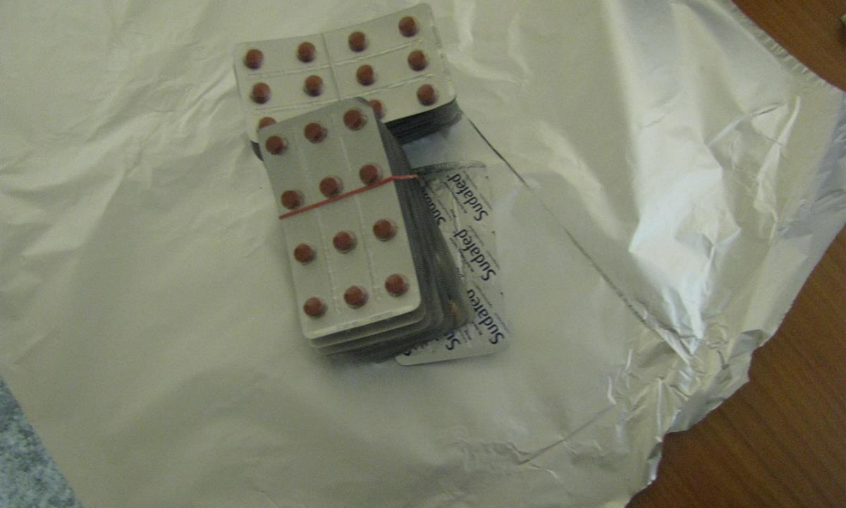 Hlídka královéhradeckých celníků řešila dne 22. března hned dva neobvyklé případy. Nejdříve v blízkosti obce Královec zastavila vozidlo české imatrikulace, ve kterém cestovali dva Češi ve věku 30 a 31 let. Na otázku celníka, zda dovážejí cigarety, tabák, léčiva nebo drogy, oba shodně odpověděli, že nikoliv. Celníci přistoupili k důkladné kontrole auta, při které na zadním sedadle našli za taškou papírový sáček s 252 tabletami léku Sudafed. Dále na podlaze a za sedačkou spolujezdce hlídka objevila pět kusů laboratorního skla používaného pro výrobu drog a dvě skleněné dózy od chemikálií. Řidič během kontroly přiznal, že požil drogy - marihuanu a pervitin. Přivolaní policisté provedli test na přítomnost návykových látek s pozitivním výsledkem. Řidiče si převzali policisté a případ šetří celníci z odboru pátrání CÚ pro Královéhradecký kraj.