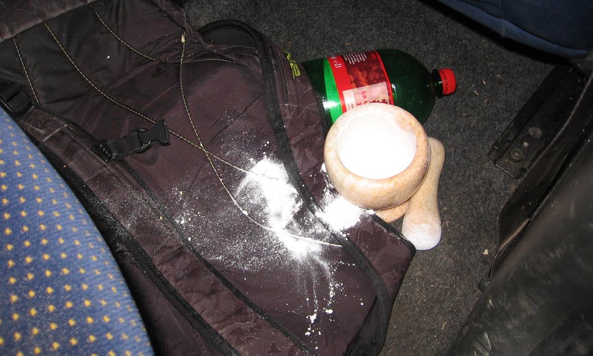 Osádka osobního vozidla (žena a dva muži) registrovaného v Královéhradeckém kraji cestovala směrem od bývalého hraničního přechodu Olešnice do vnitrozemí a celníkům sdělila, že nic nepřeváží. Při důkladné kontrole celého vozu celníci za pomoci služebního psa vycvičeného na vyhledávání drog nalezli za sedačkou spolujezdce plastovou láhev s drceným bílým práškem a na podlaze tamtéž kameninový hmoždíř se stejnou bílou látkou. Na sedačce za spolujezdcem ve sportovní tašce hlídka objevila vybavení na výrobu omamných a psychotropních látek (laboratorní sklo, různé chemické látky, plastové rukavice, apod.).