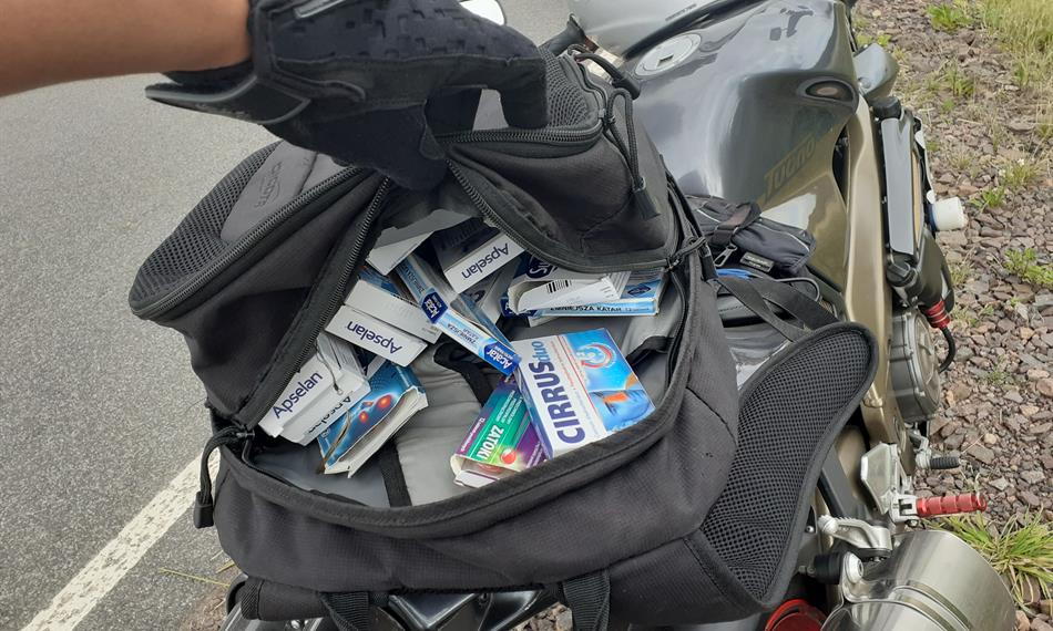 motocyklu. V něm vezl léky obsahující pseudoefedrin, který může být