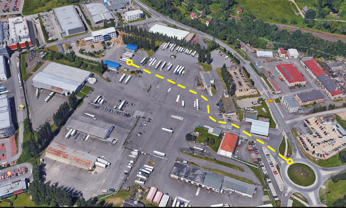 Náhradní trasa pro odbavení nákladních vozidel vede po celou dobu uzavírky přes areál ČSAD (vjezd u benzínové stanice vedle budovy označené nápisem „ČSAD") a zadní branou do celního prostoru celního úřadu.