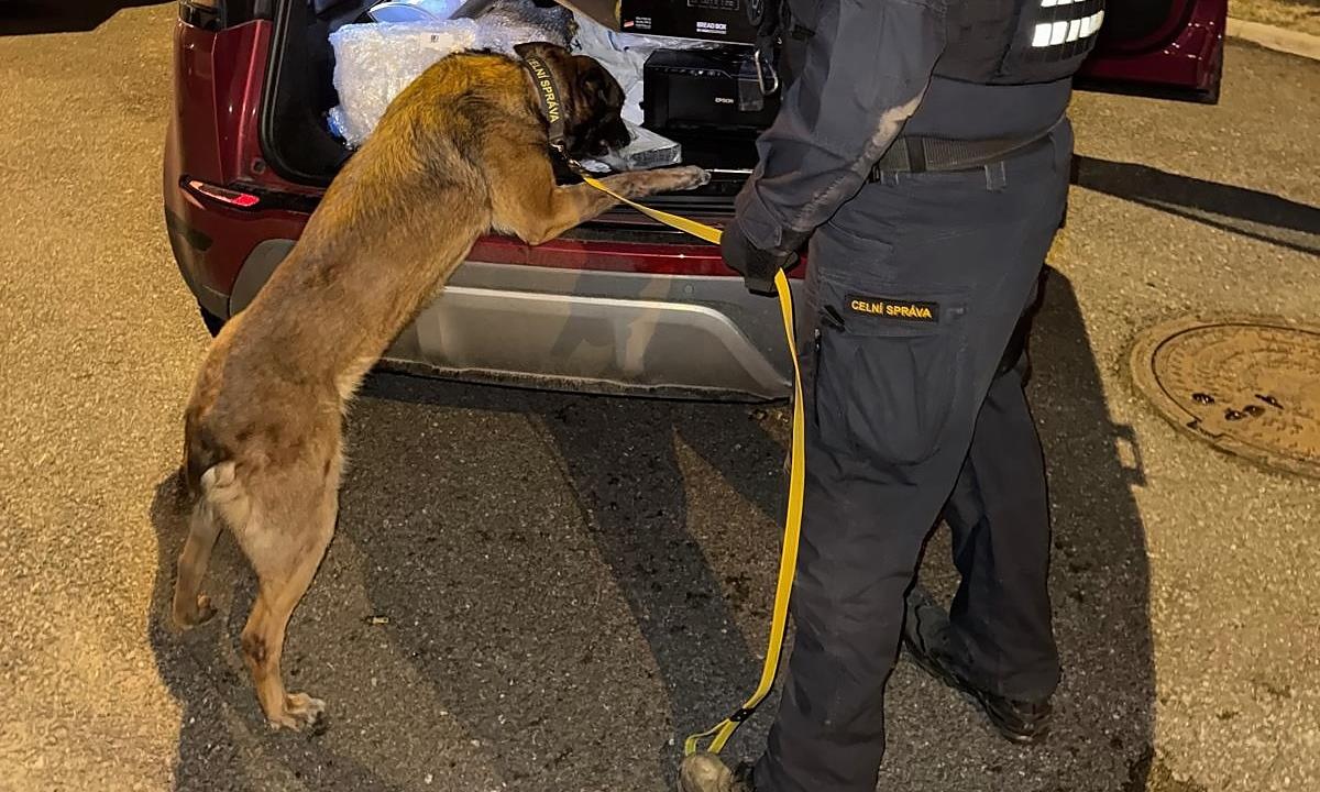 Při následné kontrole vozidla však celníci v zavazadlovém prostoru objevili papírovou krabici, v níž byl uložen chlebník. Uvnitř se nacházela igelitová taška s obdélníkovým balíčkem pečlivě zabaleným do plastové fólie. Na podezřelý nález okamžitě pozitivně reagoval služební pes vycvičený na detekci omamných a psychotropních látek.