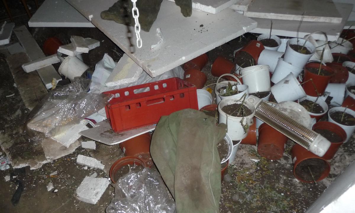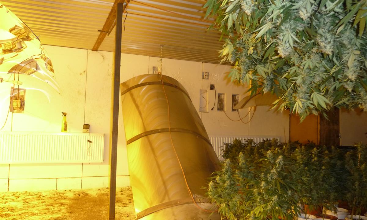Za dveřmi jedné z místností, které byly propojeny s halou, byla odhalena kompletně vybavená a funkční pěstírna konopí. Nechyběla vzduchotechnika, elektroinstalace ani osvětlení nutné pro pěstování marihuany. Většina rostlin byla v květináčích, část již byla čerstvě sklizena a část ve stádiu sušení. Celkem napočítali 600 rostlin.