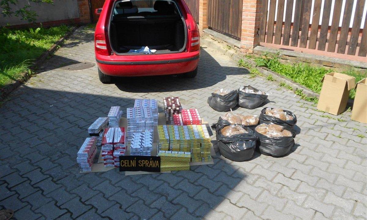 Celkem 24 200 kusů cigaret a 22 kg tabáku se vešlo do osobního vozu Škoda Fabia.