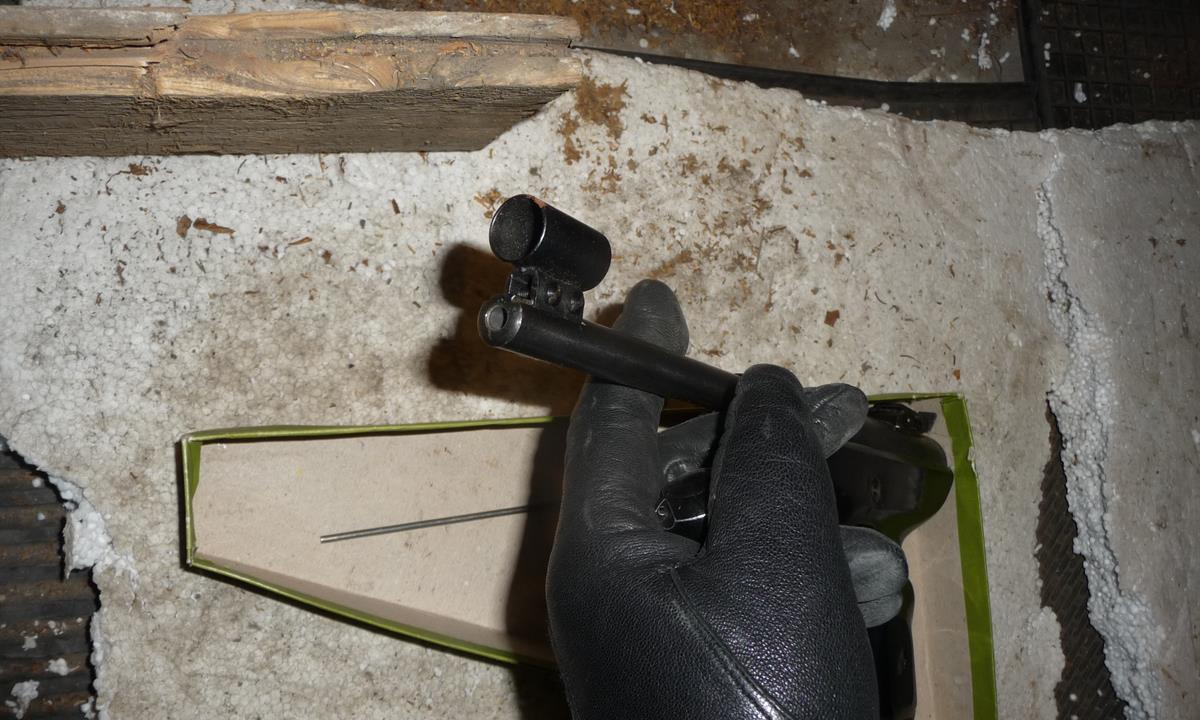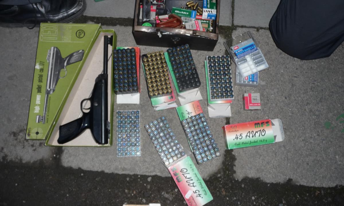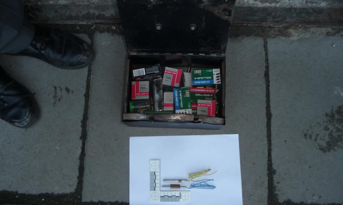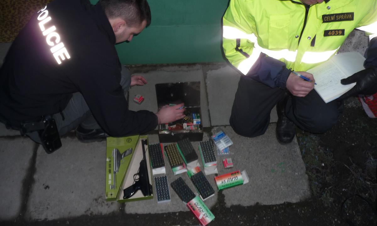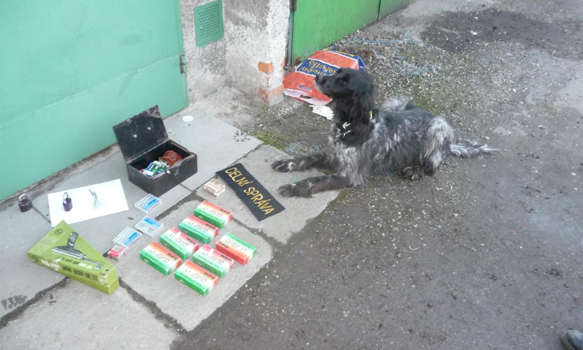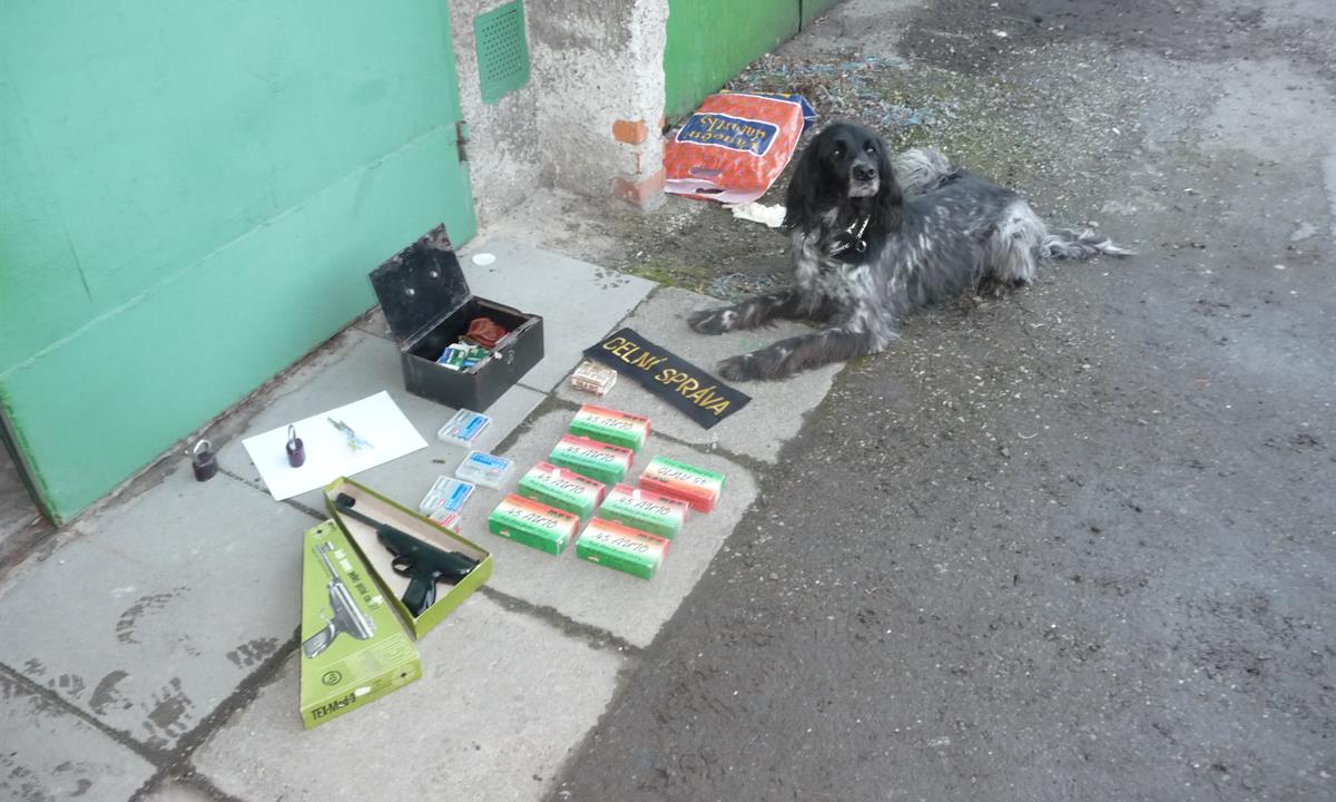 Dále zde celníci našli kartonovou krabičku s pistolovými náboji a na polici zbraň – vzduchovou pistoli, která byla vrtáním upravena na malorážku. V garáži se nacházel také uzamčený malý přenosný trezor bez klíče. Muž tvrdil, že trezor, zbraň i náboje našel před třemi lety v lese a není držitelem zbrojního povolení. Služební pes vycvičený na vyhledávání omamných a psychotropních látek, zbraní a střeliva pozitivně označil uzamčený přenosný trezor. Jelikož vzniklo důvodné podezření, že muž spáchal přečin nedovoleného ozbrojování, byla celá věc nahlášena policii. Do objektu se dostavili i pyrotechnici, kteří pomocí RTG prověřili neznámý obsah přenosného kovového trezoru a zjistili, že se v něm nenachází žádný nástražný výbušný systém. Trezor otevřeli a našli další náboje různých ráží, v celkovém počtu 710 kusů, zásobník a dva elektrické iniciátory.