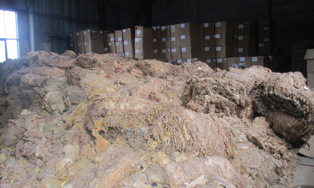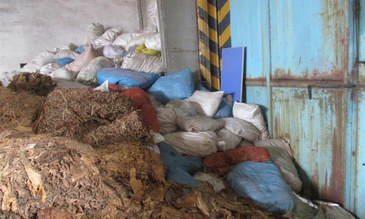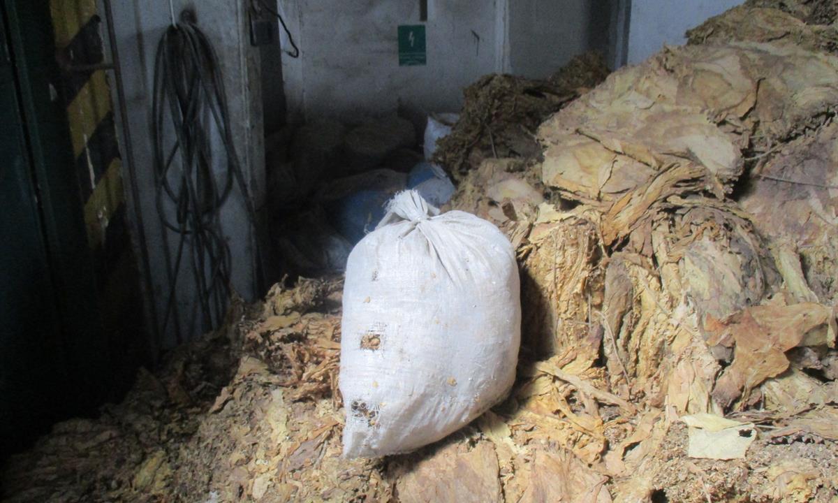 Po vstupu do výše uvedených skladových prostor hlídka zjistila, že se zde nachází surový tabák částečně volně ložený, kartonové krabice a větší množství pytlů.