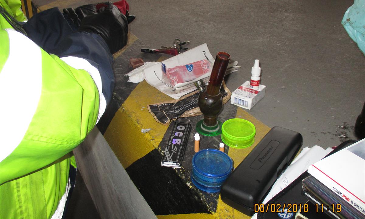 Uvnitř se nacházel černý igelitový sáček, ve kterém byly dealerky se sušenou marihuanou. Následně proběhla kontrola vozidla, kde Fram označil dveře spolujezdce a prostor mezi sedadly. Tam se nacházely dvě drtičky na sušinu, jointy, cigaretové papírky a bong na hulení. Váha se zastavila na 57 gramech.
