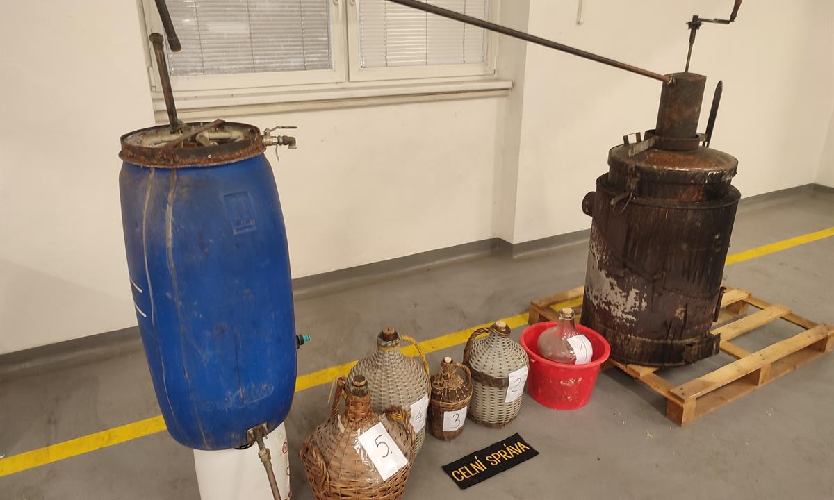 V rámci vyhledávací činnosti zaměřené na nelegální výrobu lihu provedli příslušníci celní správy dne 10. prosince kontrolu v jednom z areálů na Zlínsku. V prostoru bývalé prádelny bylo nalezeno kompletní destilační zařízení určené k výrobě lihu. V dalších místnostech se navíc nacházelo pět demižónů s vypáleným ovocným destilátem.