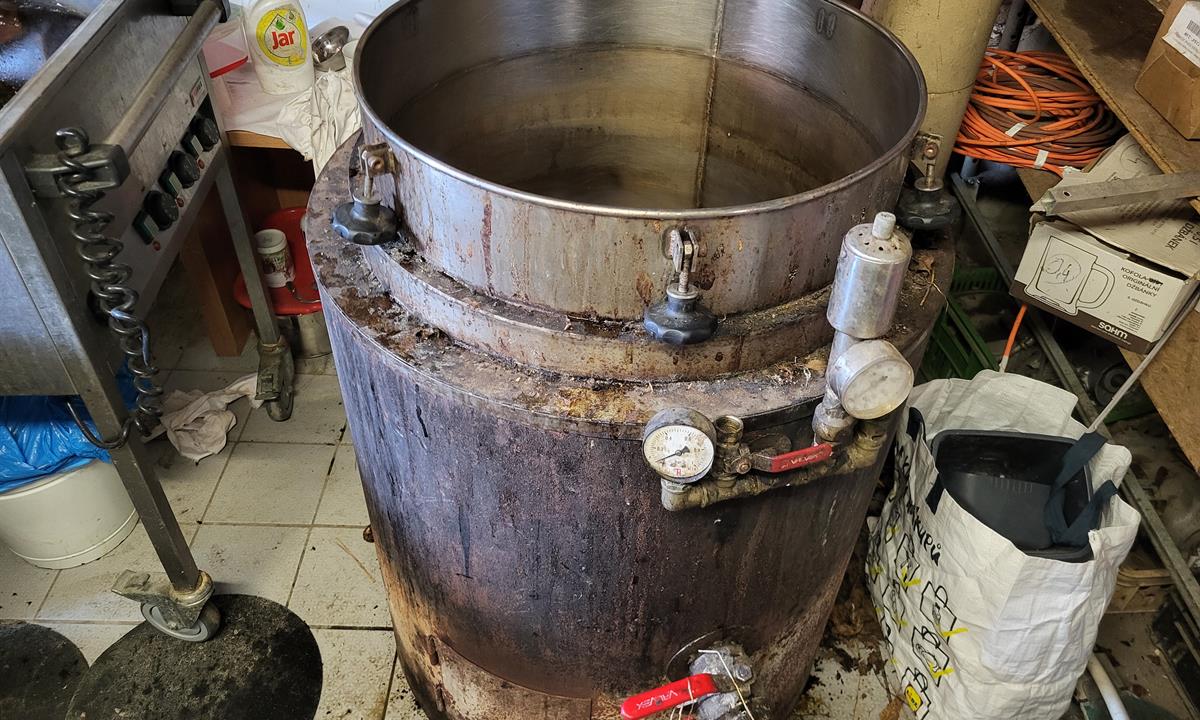 Osoba přítomná na místě se snažila celníky přesvědčit, že zařízení slouží k výrobě marmelády. Tuto verzi však rychle vyvrátil okamžik, kdy bylo otevřeno víko kotle – uvnitř se nenacházelo nic jiného než lutr, tedy prvotní destilát, který s domácím zavařováním nemá nic společného.