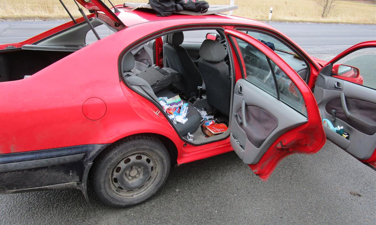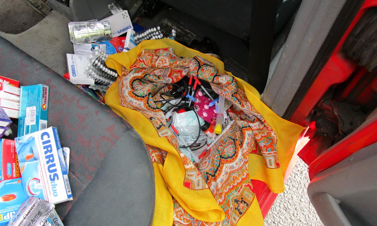 Olomoučtí celníci prováděli běžné kontroly na silnici v blízkosti obce Zlaté Hory na Jesenicku. Krátce před jedenáctou hodinou dopoledne zastavili vytipované osobní vozidlo s českou poznávací značkou. Cestujícími byli tři muži ve věku 30, 31 a 41 let. Spolujezdec vedle řidiče tvrdil, že veze pervitin pro osobní potřebu. Muži se chovali podivně, jakoby požili návykovou látku, proto celníci přistoupili ke kontrole vozidla. Na zadních sedačkách a pod nimi našli více než 1300 kusů tablet různých léků s pseudoefedrinem. Dále v šátku zabalené prázdné injekční stříkačky, šlukovku, igelitové sáčky (dealeráky) s obsahem zelených sušených rostlin, plastovou průhlednou tubu se stejnými rostlinami, jednorázovou stříkačku s nažloutlou tekutinou uvnitř, aj. Celkem tak celníci zajistili 1336 kusů tablet různých léků s pseudoefedrinem, bezmála 10 gramu sušených rostlin zapáchajících po marihuaně, tři desetiny mililitru pravděpodobně naředěného pervitinu a 7 gramů bílé sypké hmoty.