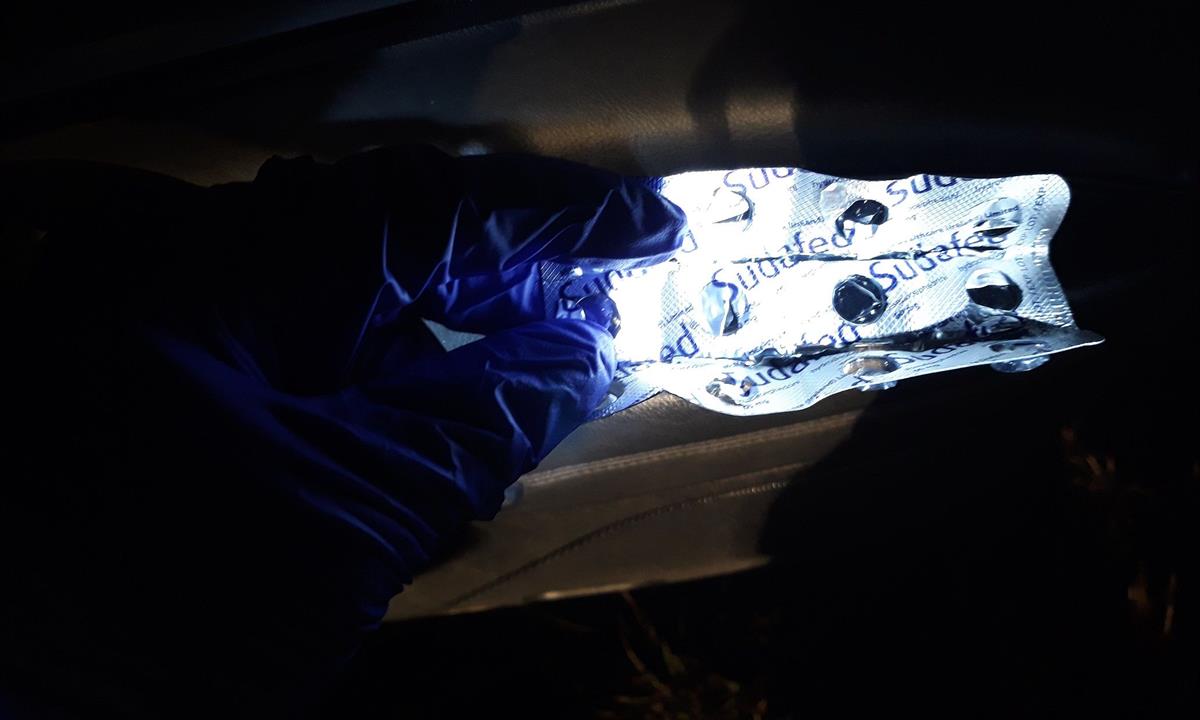 Dne 21.2. celníci zastavili nedaleko hranic s Polskem starší octavii, v níž cestovali dva muži a jedna žena ve věku 42, 34 a 17 let. Na obligátní otázku, zda vezou alkohol, cigarety nebo narkotika, odpověděli svorně, že nikoli. Zajímavý nález však ukrývala kapsa na zadní straně sedadla řidiče. Byl v ní zasunutý sáček s vatou. Po jeho vytažení se ukázalo, že spolu s patřičným obsahem ukrývá také červenohnědé tablety. Celníci se následně zaměřili na kufr vozidla. Zde objevili v batohu další vyloupané tablety téhož vzhledu. Celkové množství odhadují na 1 000 ks. S největší pravděpodobností se jednalo o lék sudafed, který se díky účinné látce zneužívá k výrobě pervitinu. Na různých místech se totiž povalovaly blistry od tohoto medikamentu. Nikdo z členů osádky se ke kontrabandu nehlásil, celníci proto okolnosti případu dále prověřují.