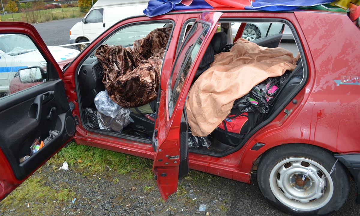 Druhým úkrytem padělků bylo nepojízdné vozidlo odstavené v areálu tržnice. Ve vozidle a ve stánku jeho majitele byla zajištěno 900 kusů padělků.