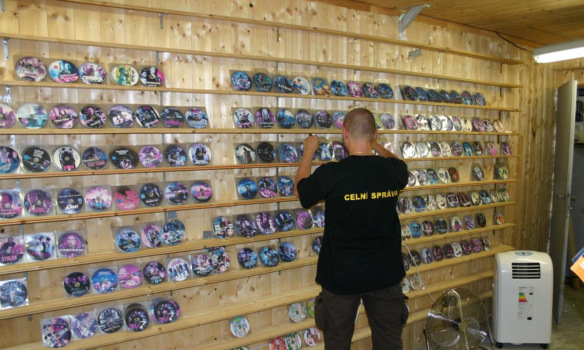 Celkem 7000 CD a DVD, 3 počítače, 2 externí disky a 2700 prázdných plastových obalů na nosiče zajistili o víkendu celníci z oddělení Odhalování trestné činnosti CÚ pro Plzeňský kraj v bytě v centru Domažlic a ve stánku na tržnici Folmava.