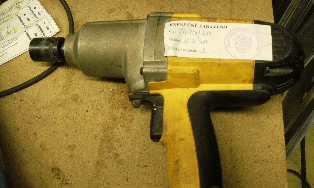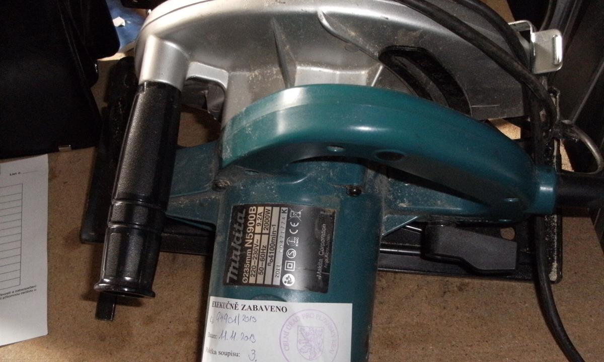 Předmětem dražby je soubor 15 ks pracovního nářadí (např. vrtačky, rozbrušovací pily, svářečky, kompresor), u kterého činí nejnižší podání 9.800,- Kč. Pokud se nevydraží celý soubor, bude se jednotlivé nářadí dražit samostatně.