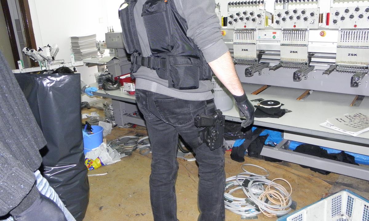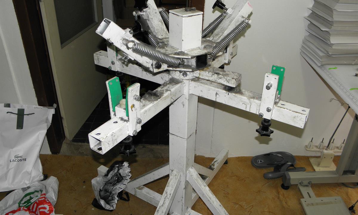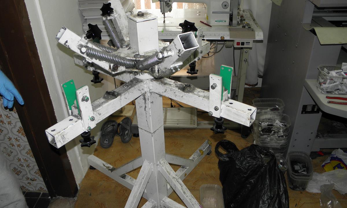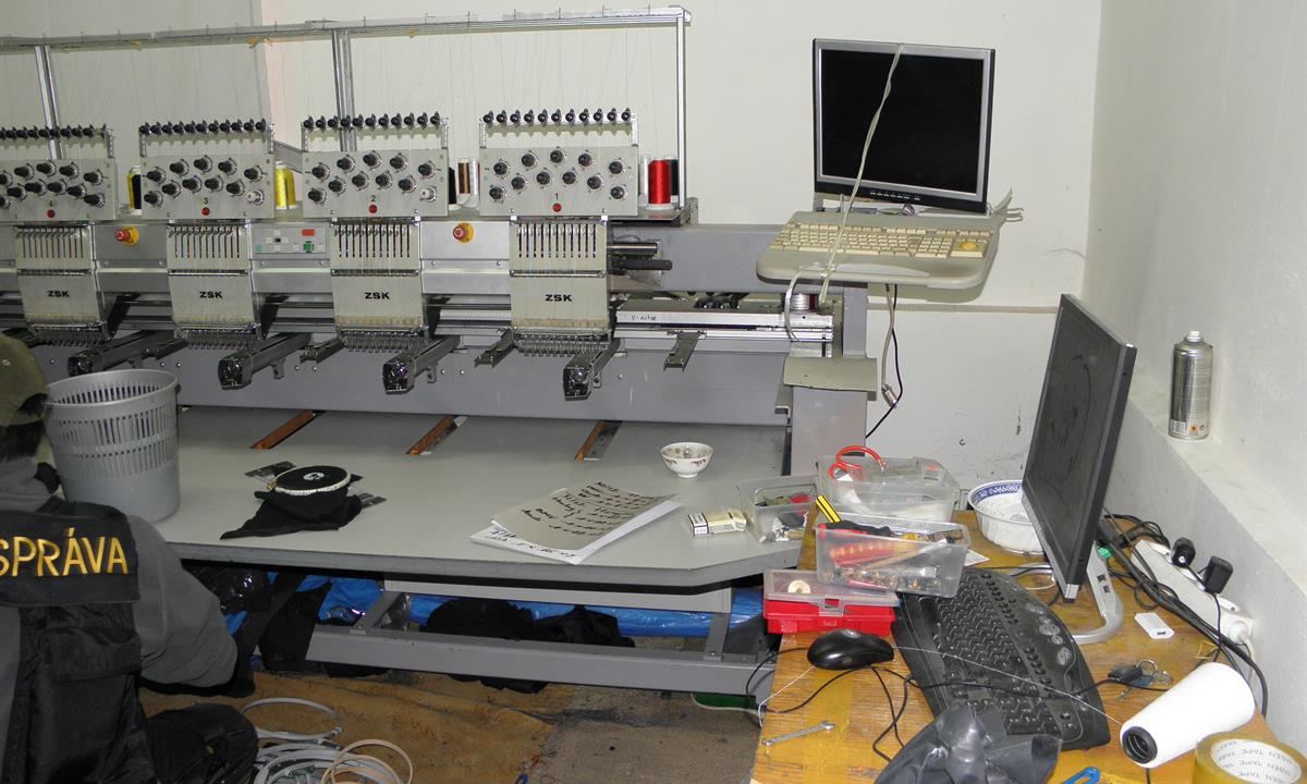 Při zásahu celníci také zajistili velký průmyslový šicí stroj, dva zažehlovací stroje, dva sítotiskové stroje, sítotiskové rámy a šablony, které sloužily ke zhotovování padělků.