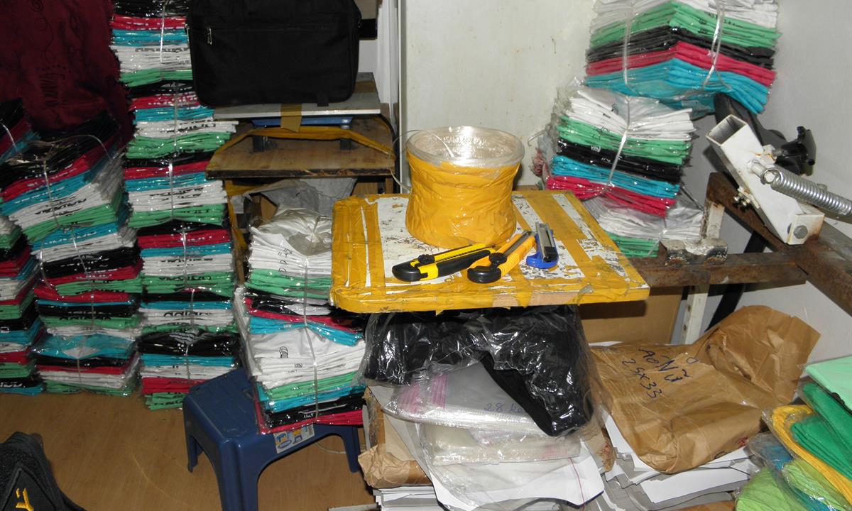 Celníci při domovní prohlídce zajistili přes osm tisíc padělaných oděvů a další stovky oděvů k padělání přímo připravených. Jednalo se především o trička a mikiny známých značek Nike, Adidas, Puma, Tommy Hilfiger, Jack Wolfskin a další. Dále celníci objevili visačky, nášivky a nažehlovací obtisky uvedených značek. Prodejní hodnota originálů by činila téměř 2,5 milionu korun.