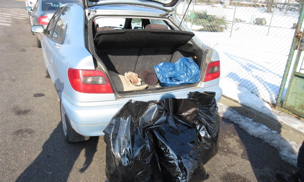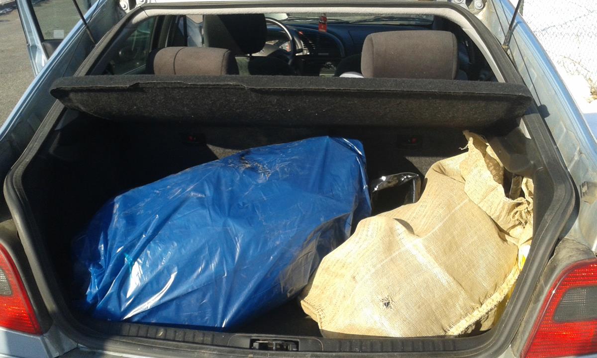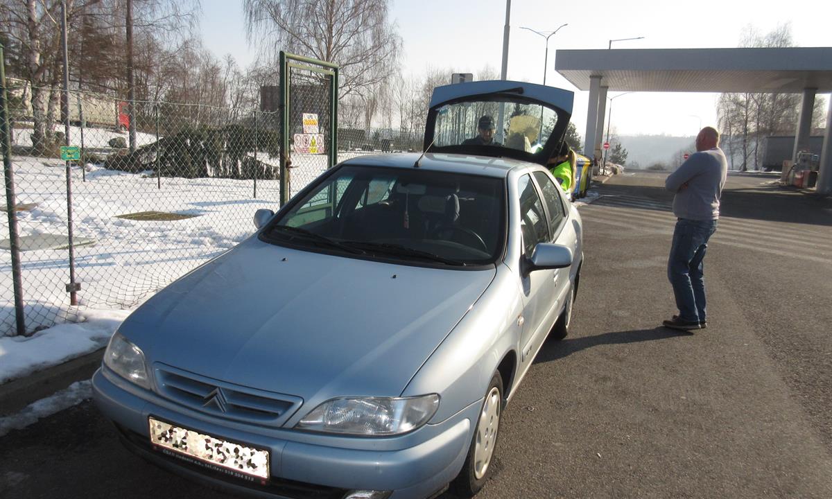 Jedním z vytipovaných vozidel byl osobní automobil Citroen Xsara, který řídil čtyřiačtyřicetiletý muž české národnosti. Na dotaz, zda veze alkohol nebo cigarety, řidič odpověděl, že cigarety a alkohol neveze. Na další otázku, zda veze nějaké jiné zboží, odpověděl, že ano, ale že se to bojí říct. Hlídka celníků vyzvala řidiče k zpřístupnění zavazadlového prostoru. Řidič nejevil žádné větší známky nervozity ani agrese a zavazadlový prostor otevřel. V něm se nacházely dva rozměrné pytle, jeden igelitový modrý, a jeden jutový. V modrém igelitovém pytli se nacházely další dva černé zatavené igelitové pytle. Jutový pytel obsahoval jeden černý zatavený igelitový pytel. Na otázku, co je v těchto pytlích, řidič sdělil, že konopí, které má pro lékařské účely, ale že zdravotní průkaz, nemá u sebe. Řidič ovšem neměl ani žádný nabývací doklad, či potvrzení, že se jedná o lékařské konopí. Celníkům řekl, že uvedené konopí zakoupil od známého, a nyní si ho veze k jinému známému, který mu z něj má vyrobit mastičku na lupenku, kterou trpí.